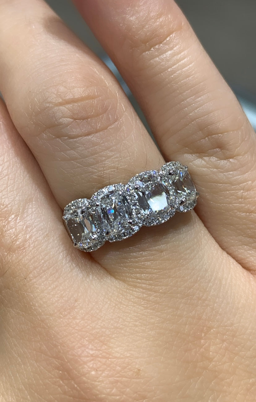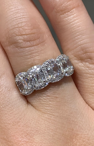Henri Daussi 2.61ct tw Cushion Matching Four Stone Band Anniversary Ring