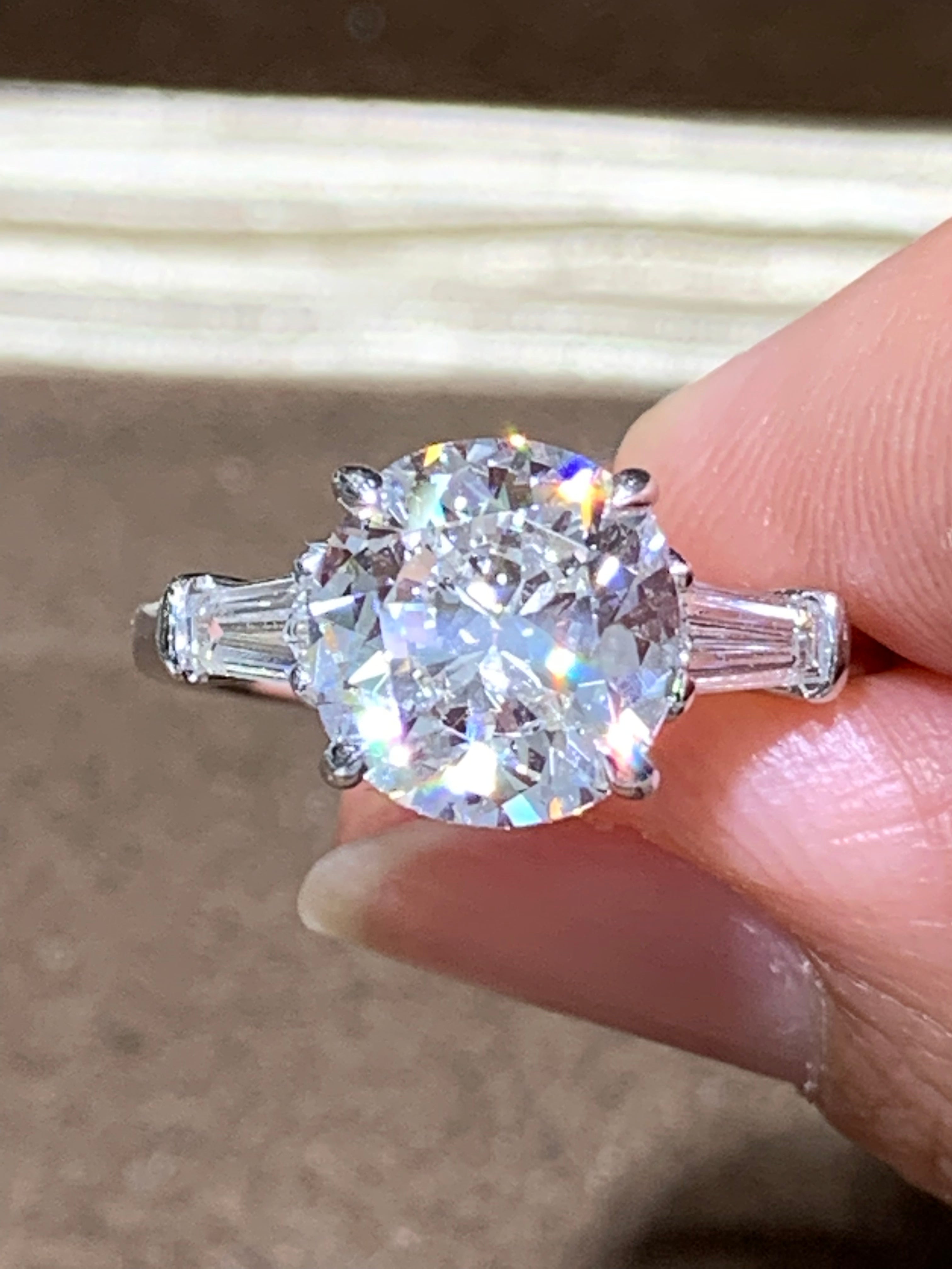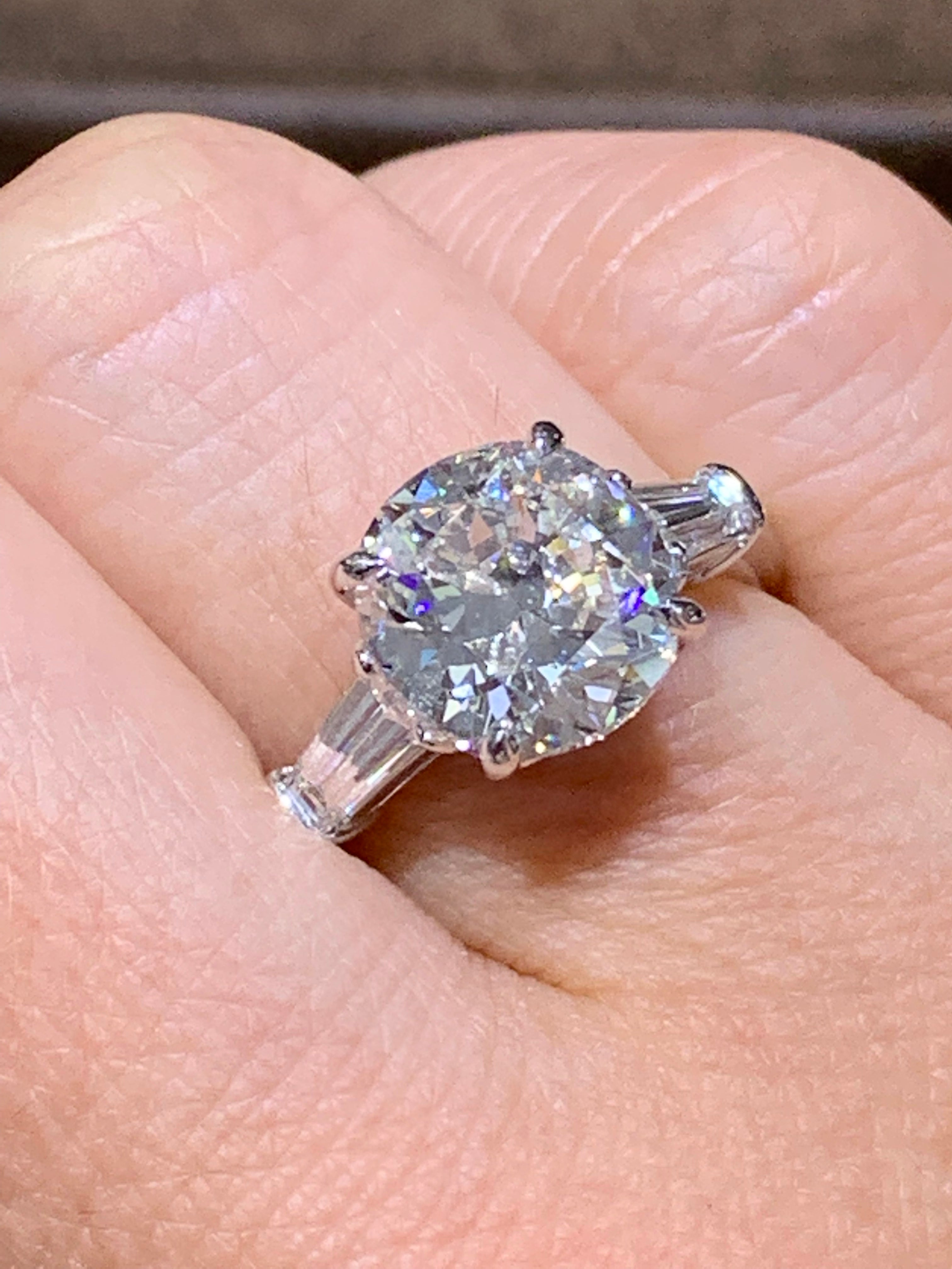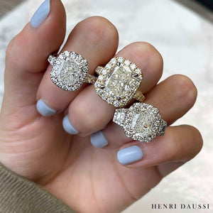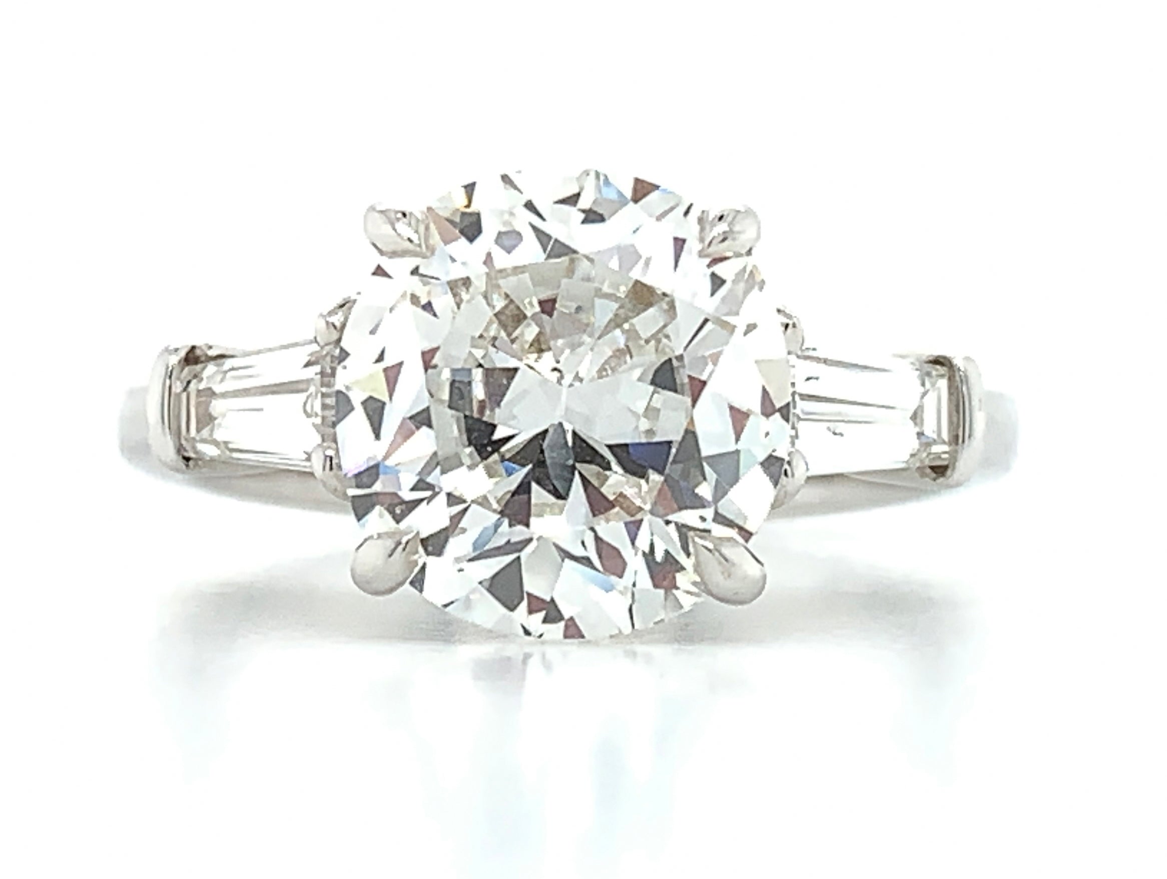 Henri Daussi 3.17ct Cushion cut Center with 0.49ct t.w. Trapez Side Diamond Engagement Ring - HANIKEN JEWELERS NEW-YORK