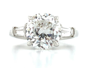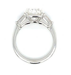 Henri Daussi 3.17ct Cushion cut Center with 0.49ct t.w. Trapez Side Diamond Engagement Ring