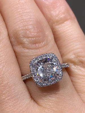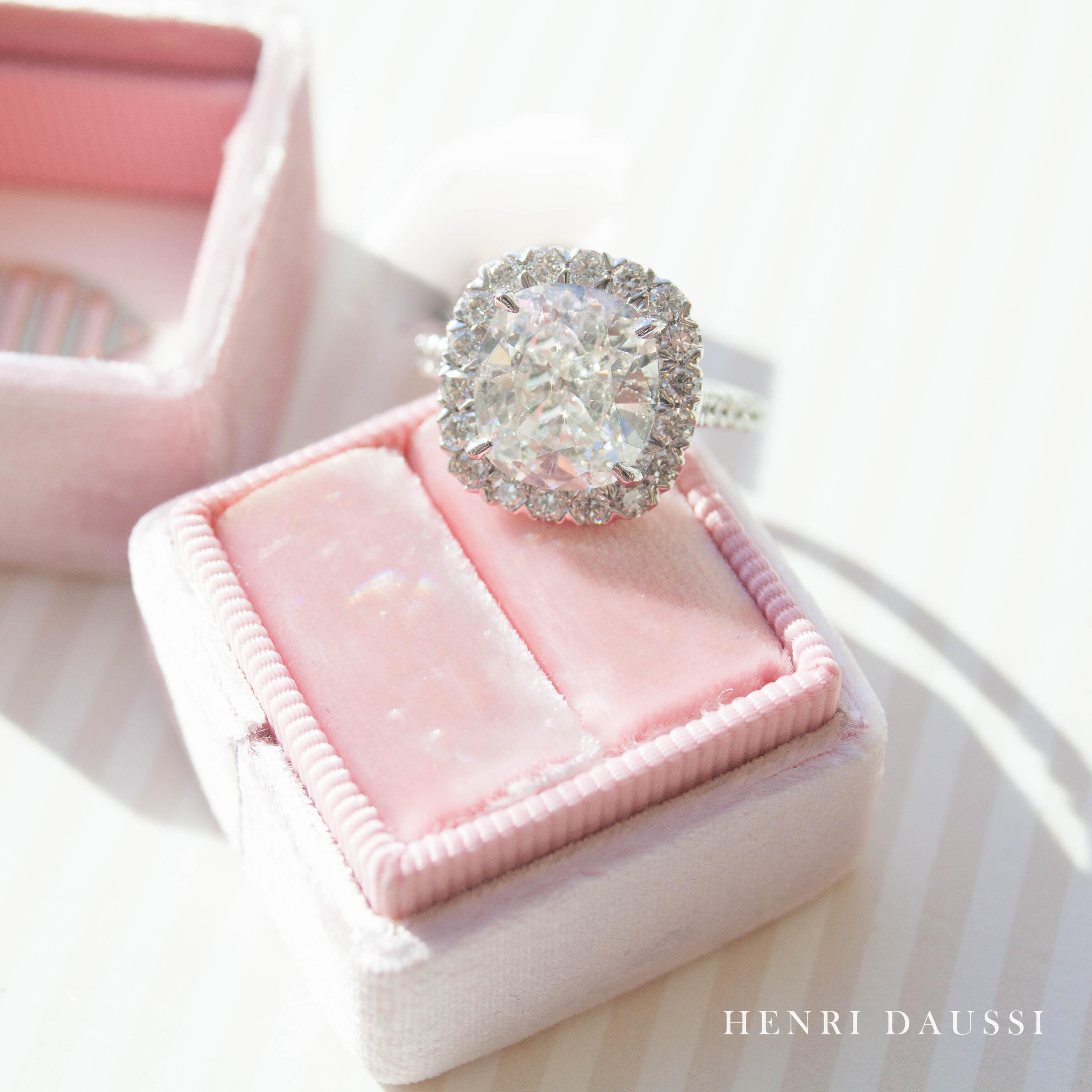 Discover the breathtaking beauty of this GIA certified Henri Daussi designer engagement ring. Featuring a stunning cushion cut diamond and a dazzling halo setting, this ring is the perfect symbol of your love. With high-quality craftsmanship and a timeless design, it's sure to leave a lasting impression.