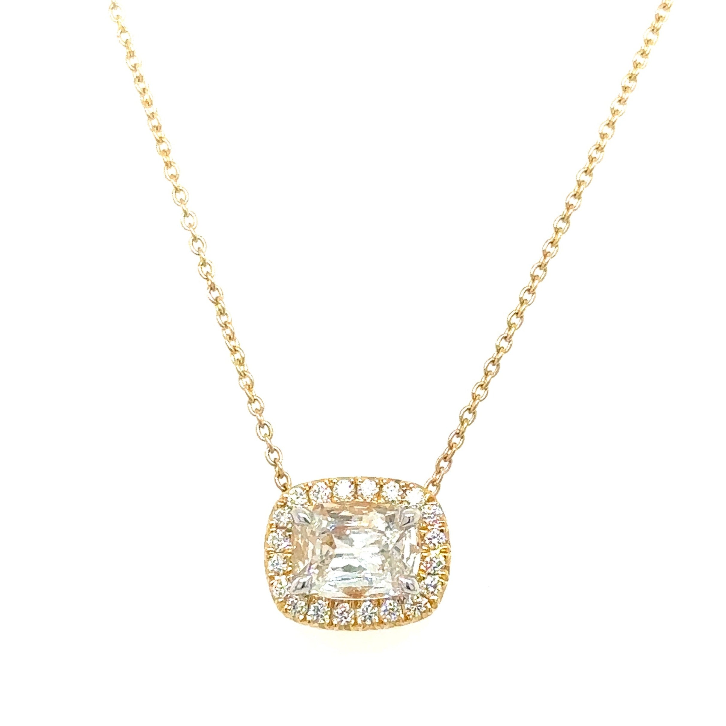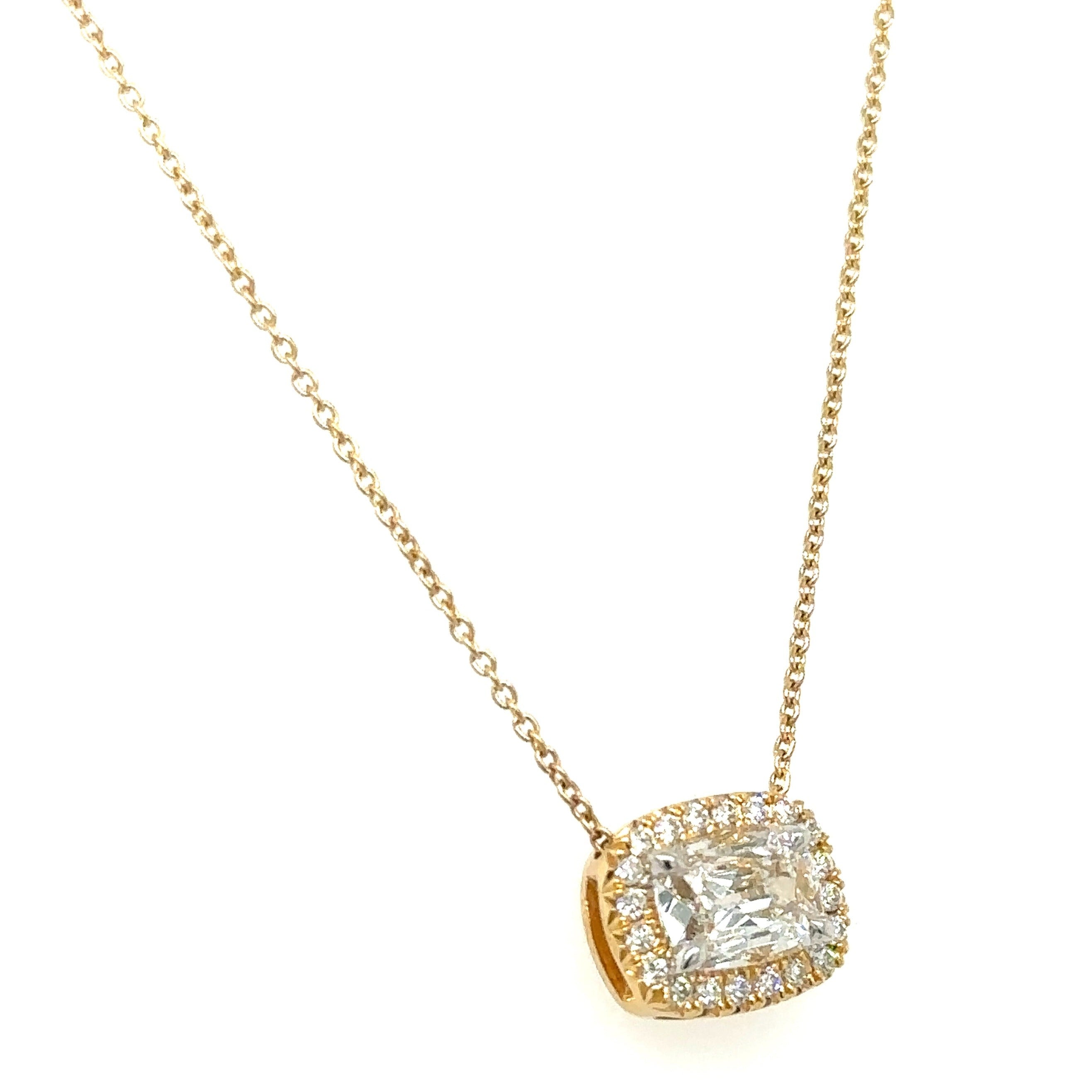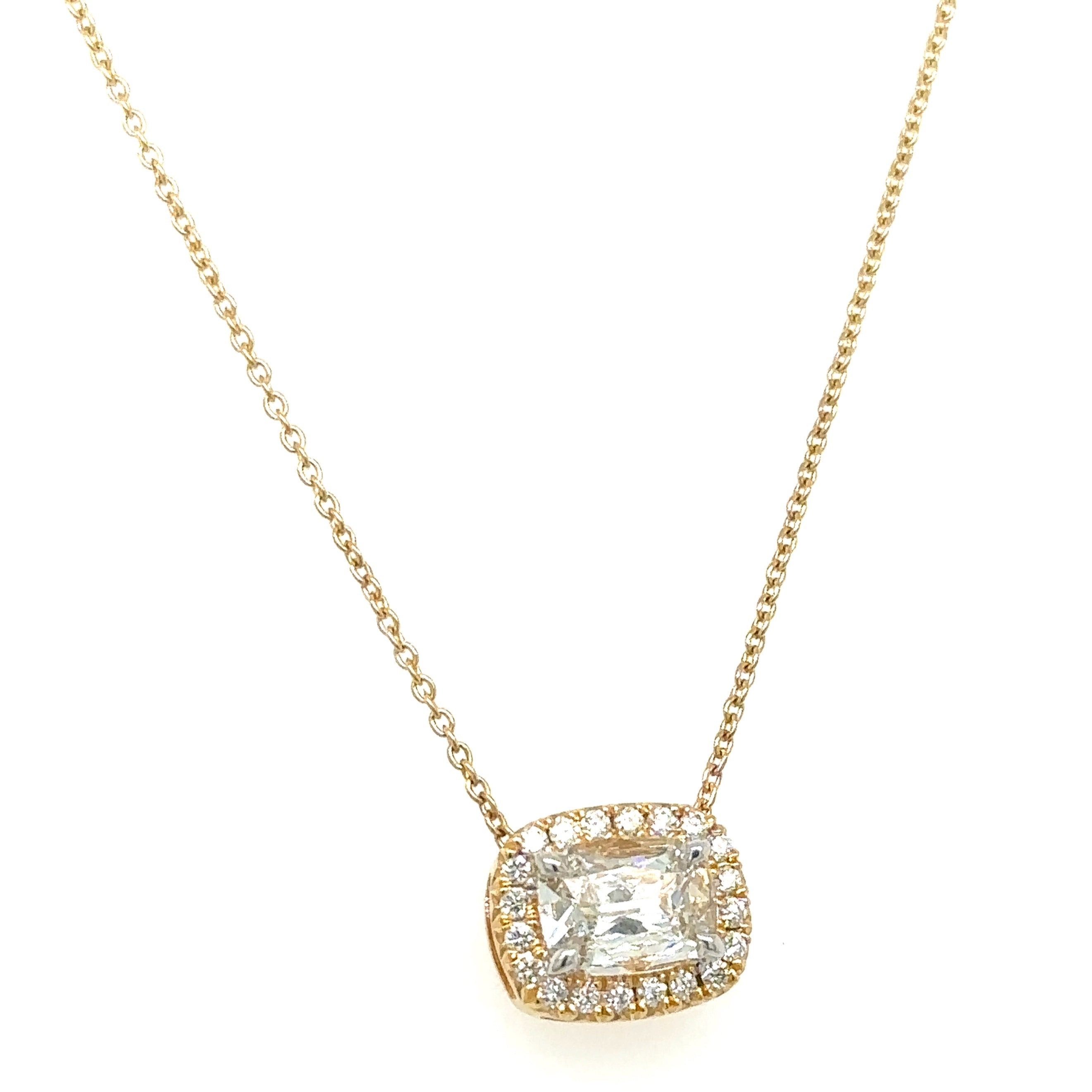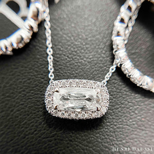 Henri Daussi Designer Signed 0.82ct t.w. Diamond Cushion Brilliant Cut Halo East - West Set Solitaire Pendant Necklace