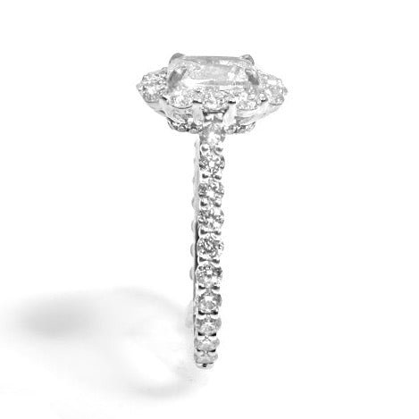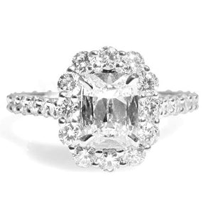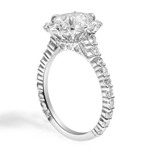 Henri Daussi diamond engagement ring featuring a pave halo and totaling approximately 2.75 carats. This ring comes with a GIA certificate, signature cushion cut in the center.