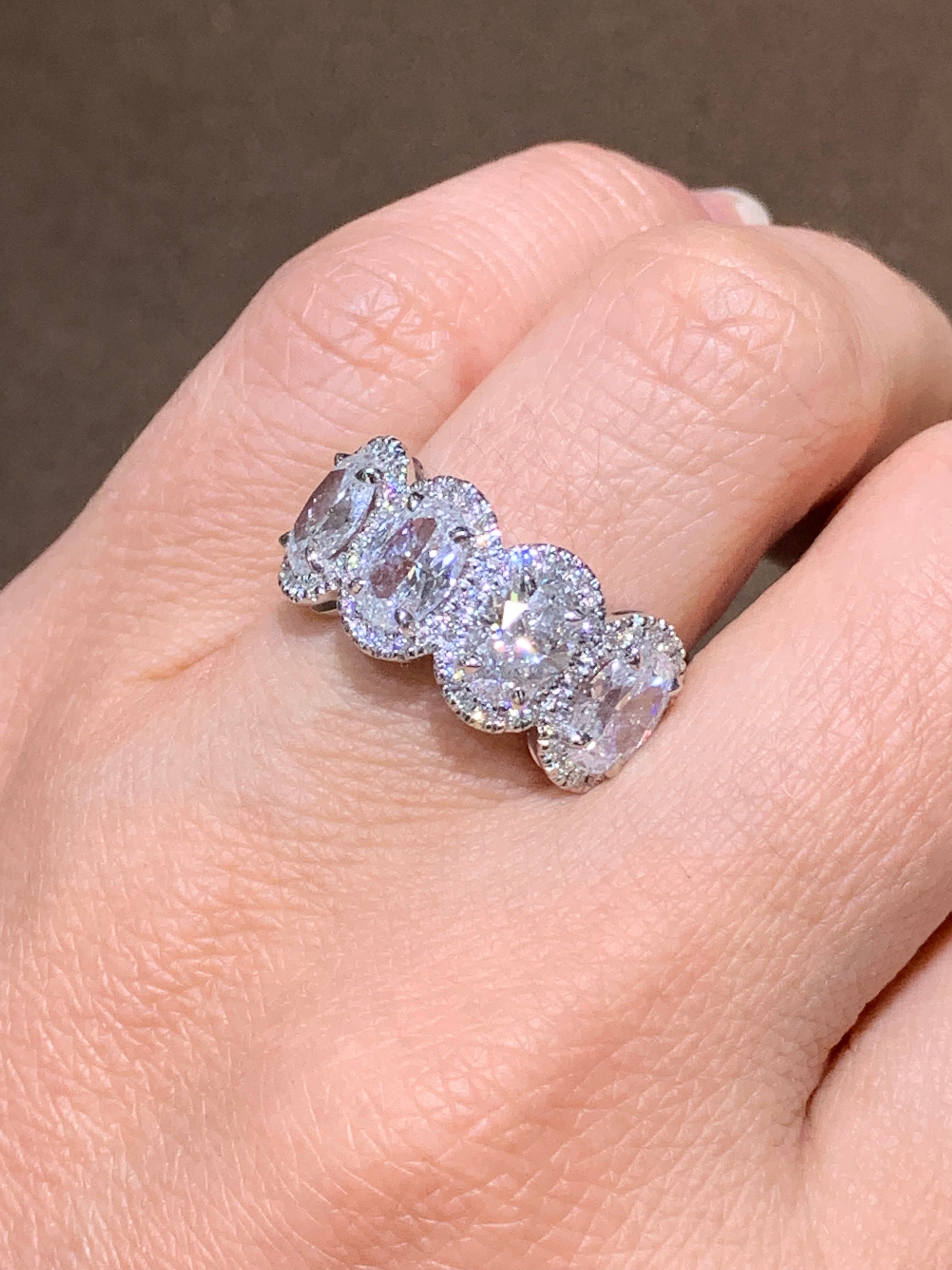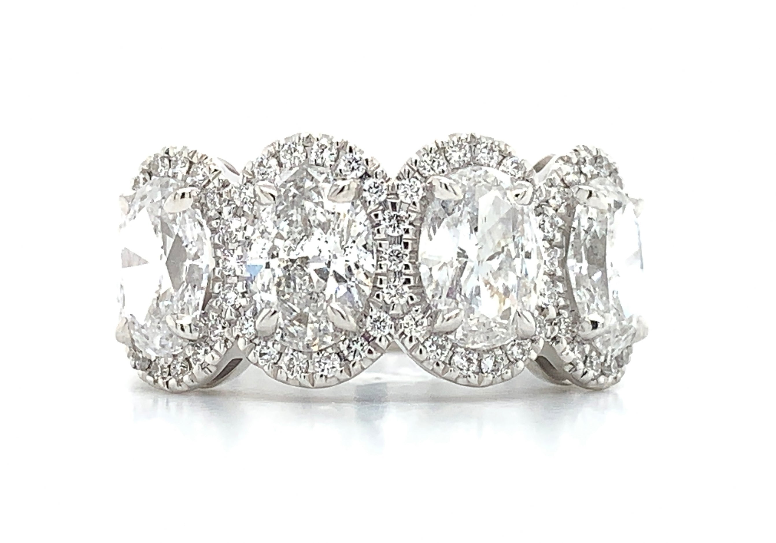 Henri Daussi Oval Four Stone  With Halo 3.22ct t.w. Ring - HANIKEN JEWELERS NEW-YORK