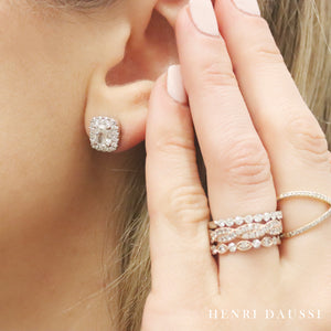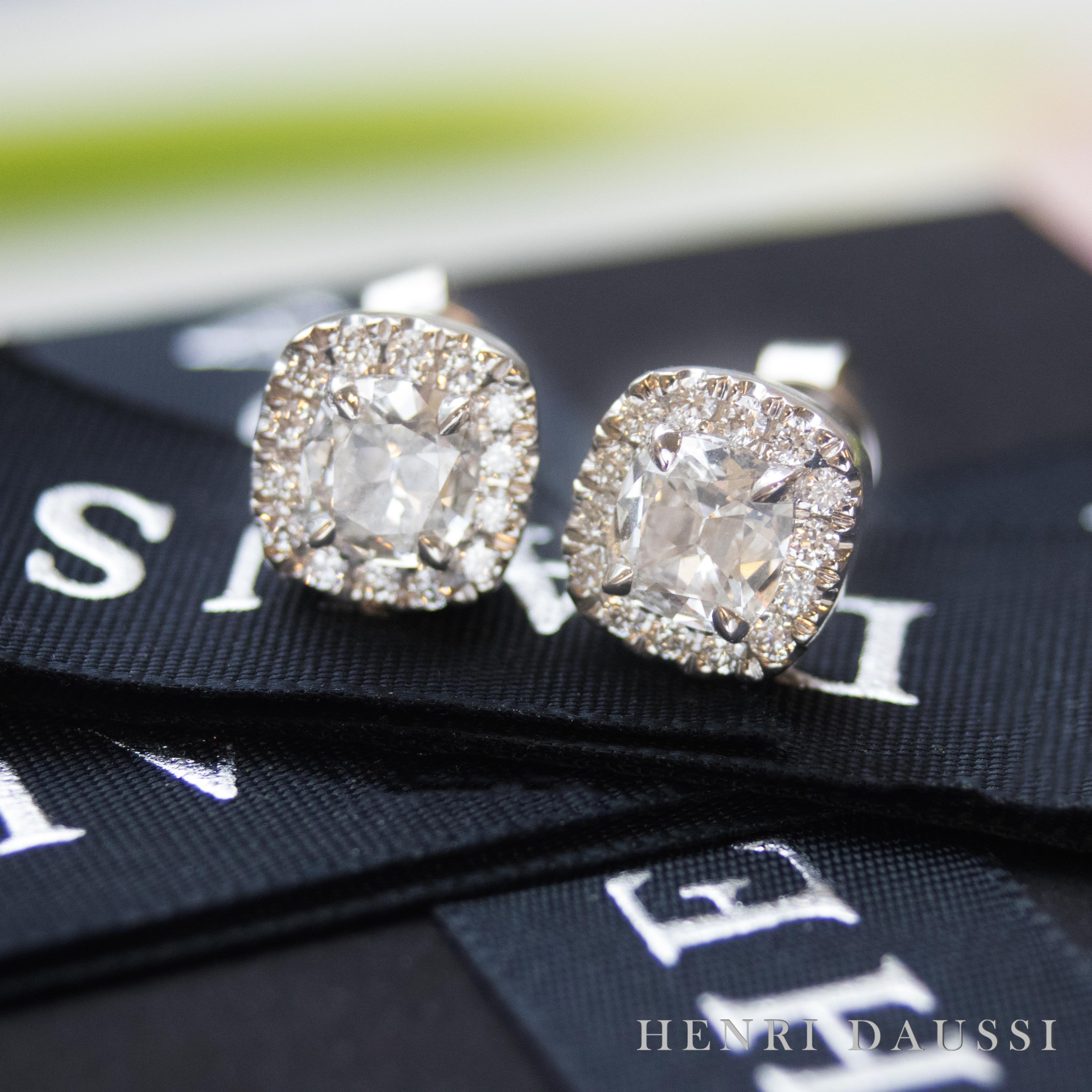 Henri Daussi Signed 1.23ctw Cushion Cut with Halo Diamond Stud Earrings