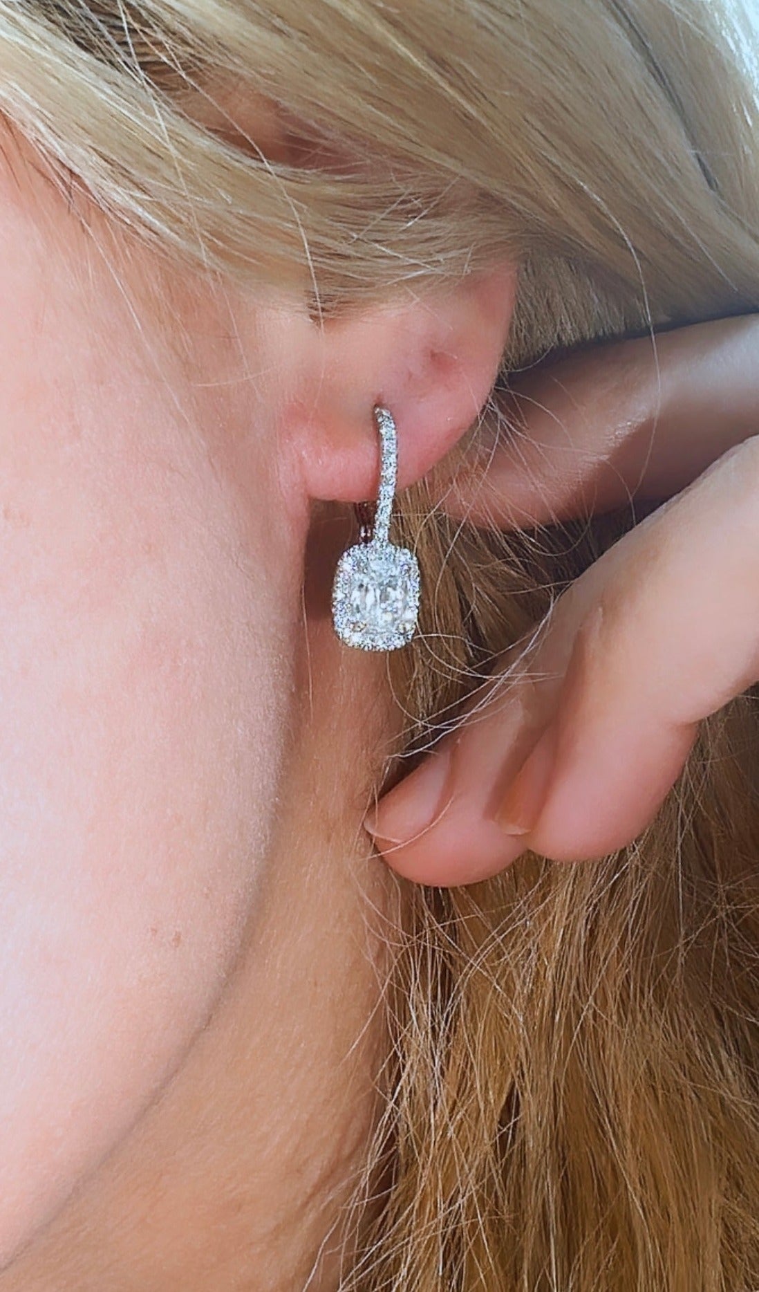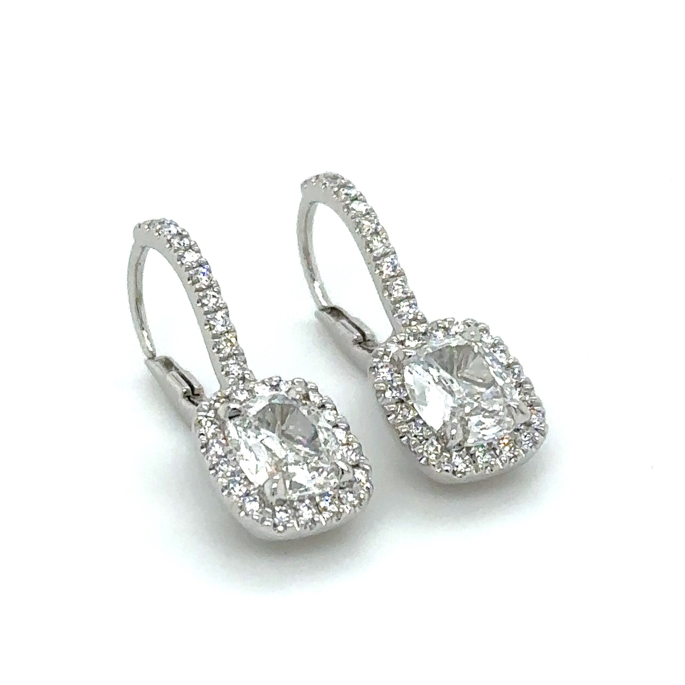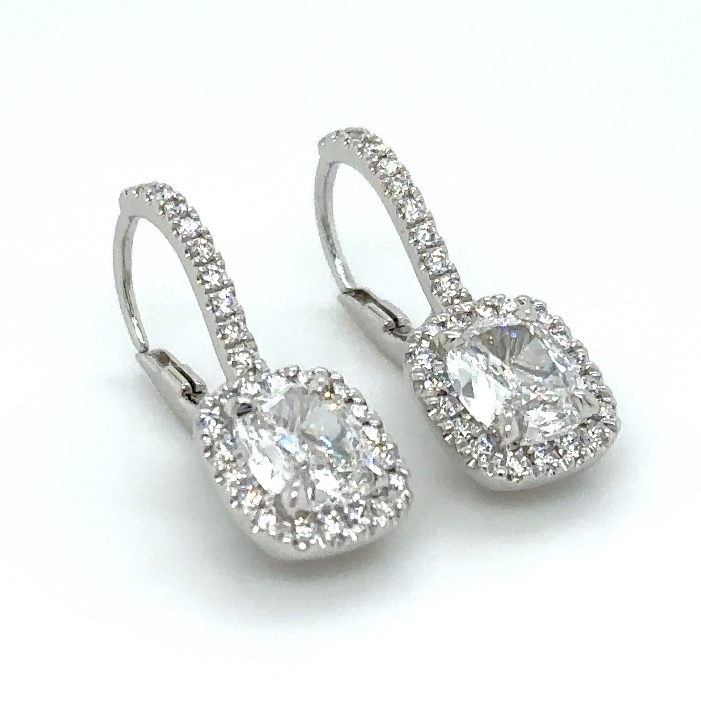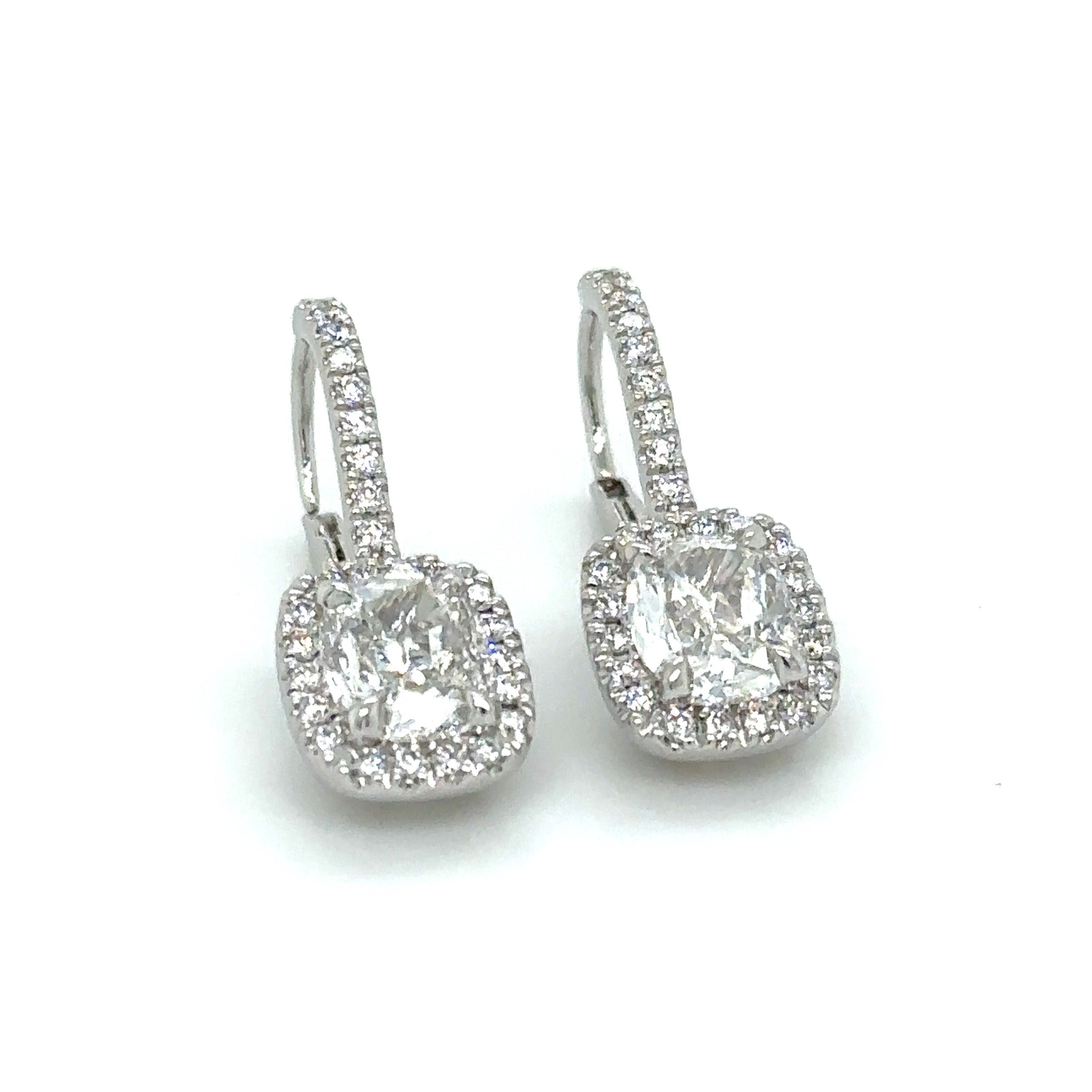 Henri Daussi Signed 1.86ct tw Cushion Cut with Halo Diamond Drop Earrings