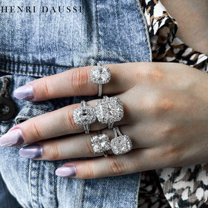 An exquisite Henri Daussi Signed Ring showcases a beautiful GIA Certified cushion-cut center diamond with a total weight of 1.66ct tw in 0.91carat its center, the perfect choice for a timelessly elegant addition to your collection. Delight in luxury with this classic jewel.