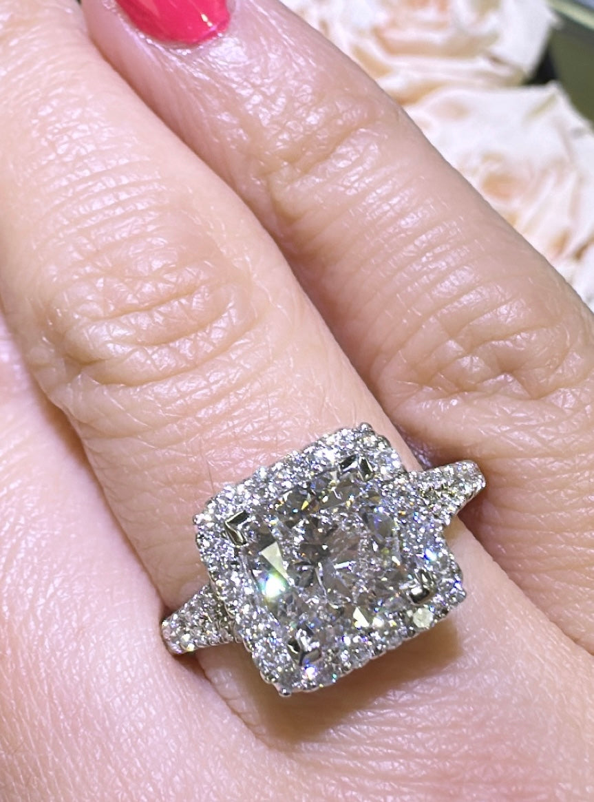 IGI Certified Lab Diamond Cushion Cut 2.06ct t.w. Halo Engagement Ring