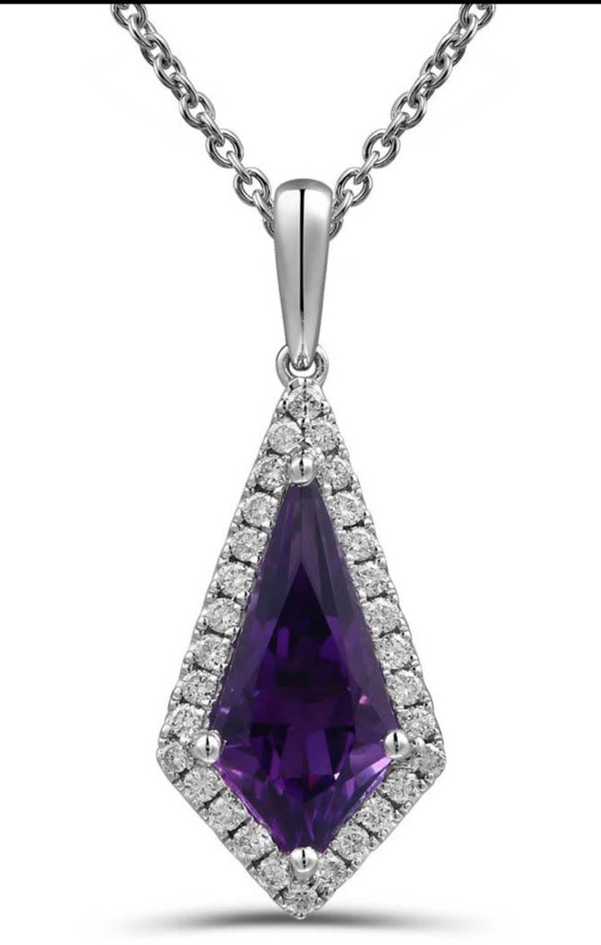 Ladies 0.14ctw Diamond Shape Amethyst Pendant Necklace