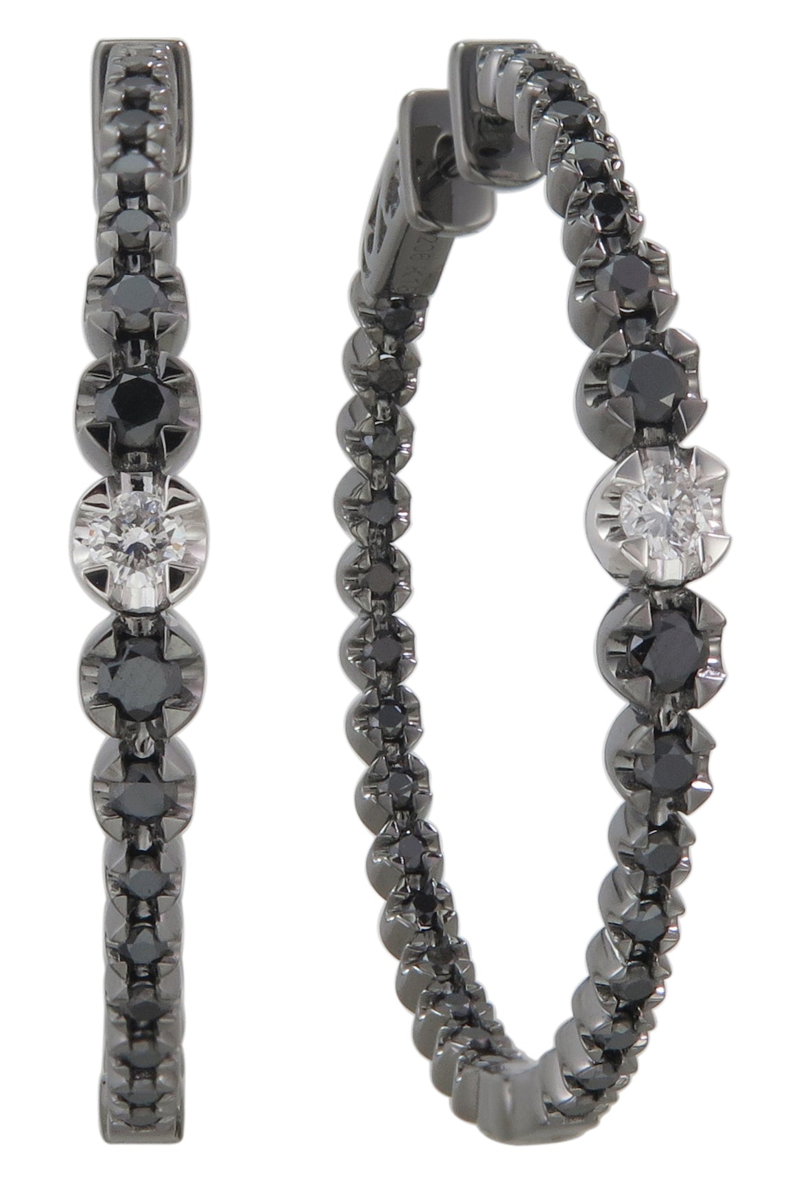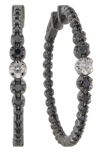 A fancy version of an old favorite. Fabulous diamond hoop earrings are paved with a total of 1.07ctw black diamonds. They are fashion-forward but wonderful for any special occasion that you might have coming up.