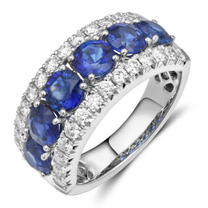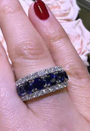 A dazzling, mystifying shade of blue sapphires with diamonds is in a class all by itself. This deep blue right-hand ring is as luxurious as it gets!