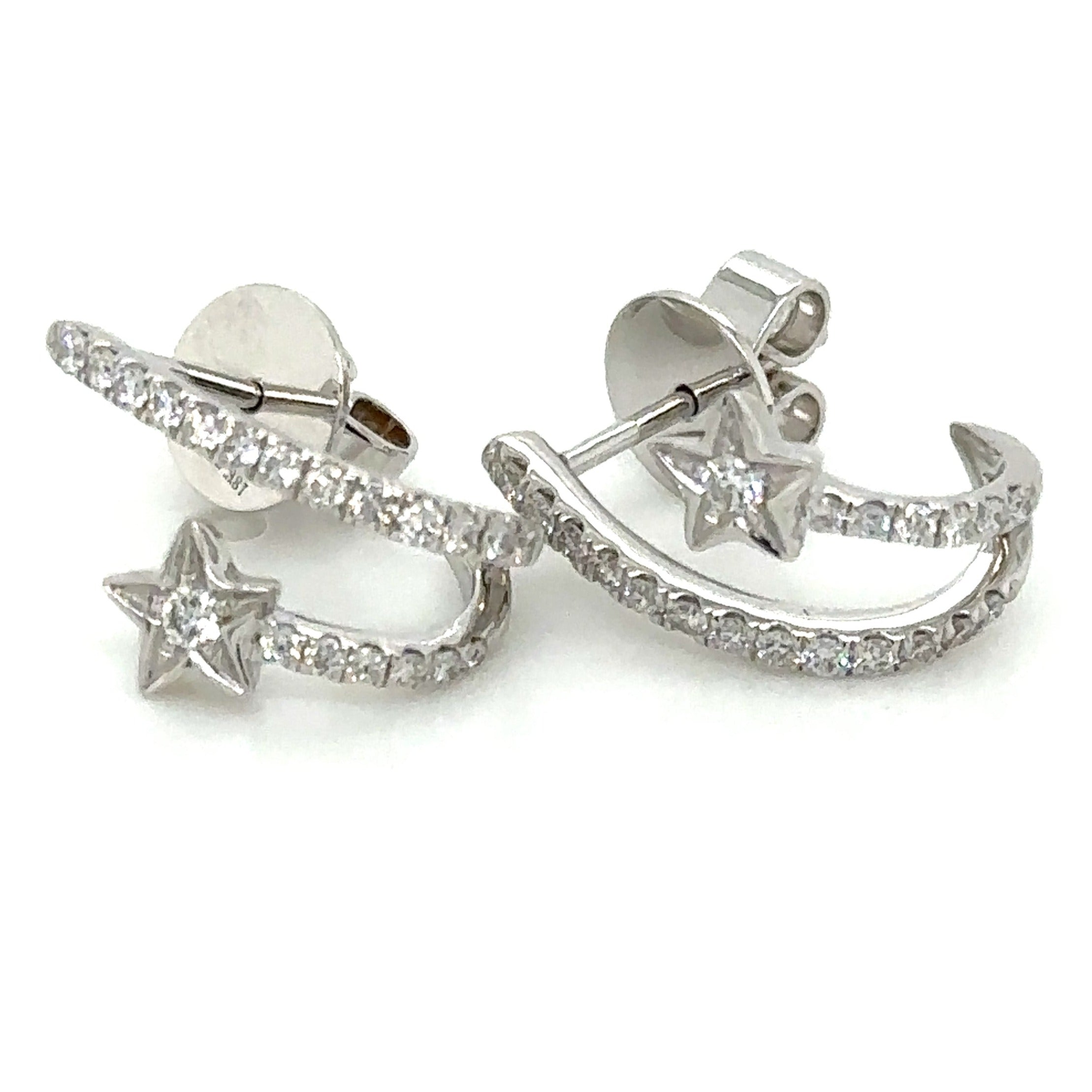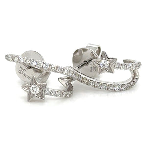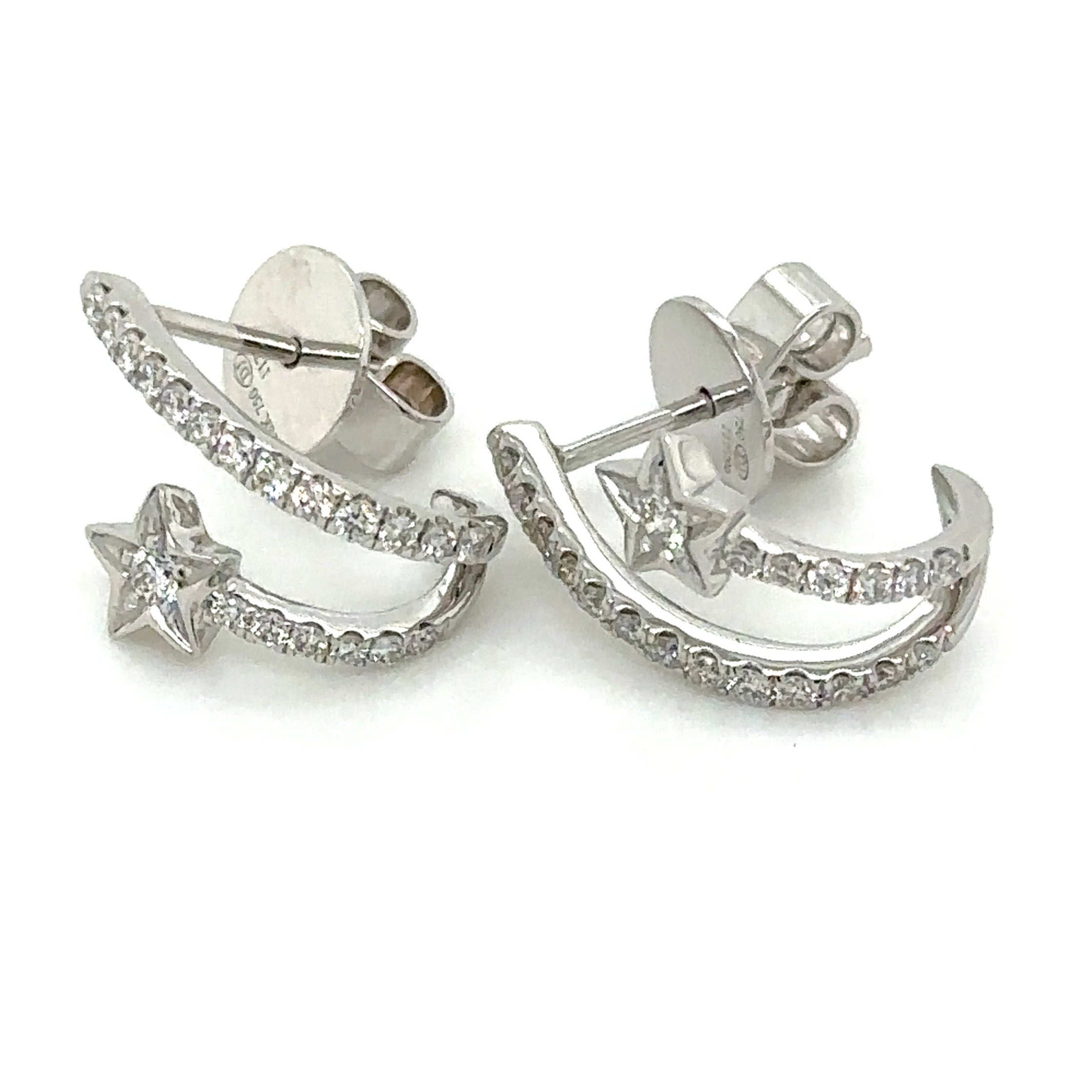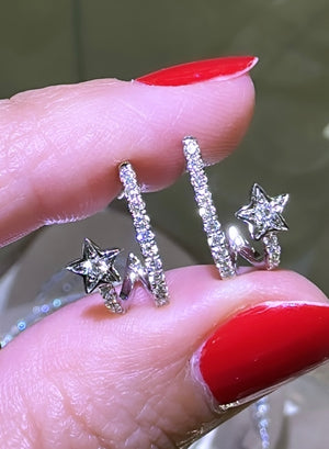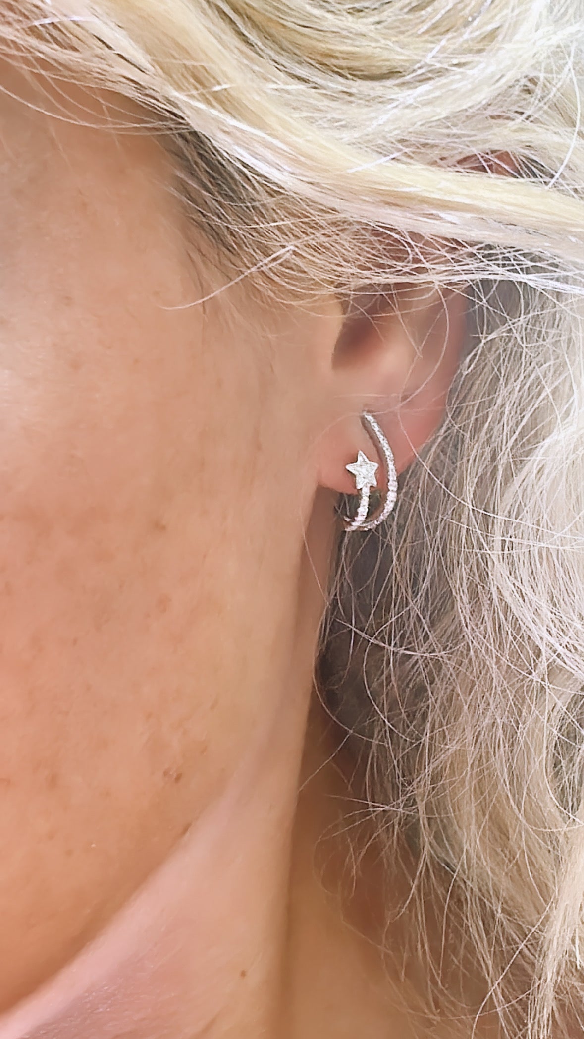 A staple in every girl’s jewelry wardrobe, these diamond huggies are perfect for everyday wear. One whole push back backing double huggie look with a shouting star.