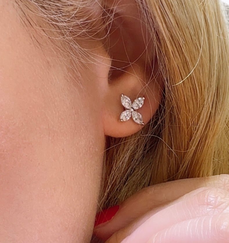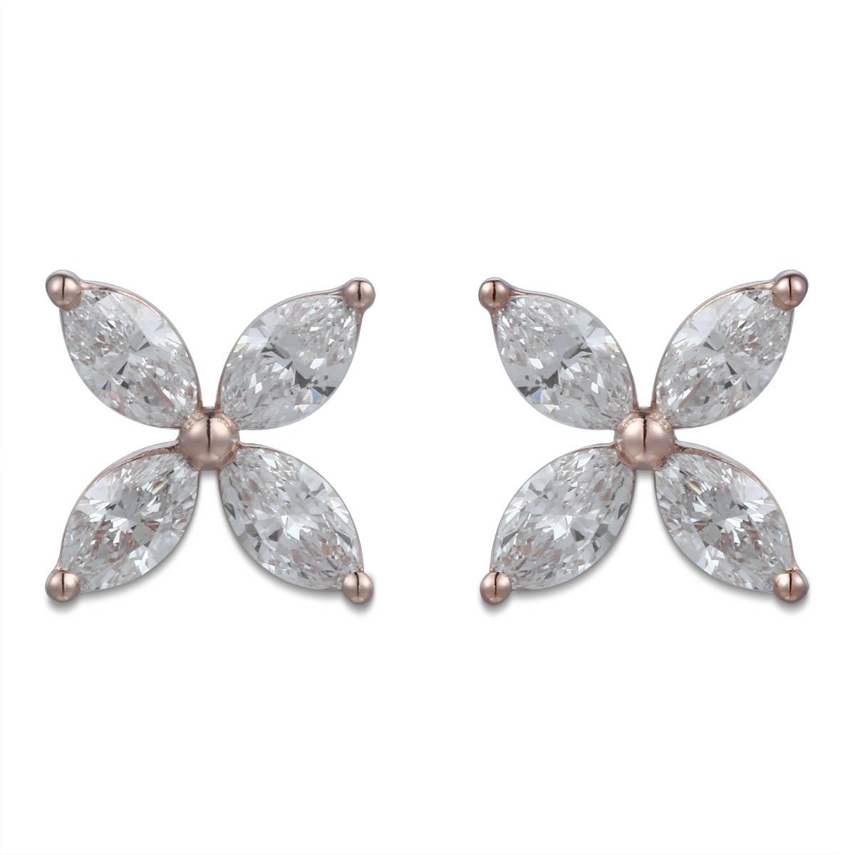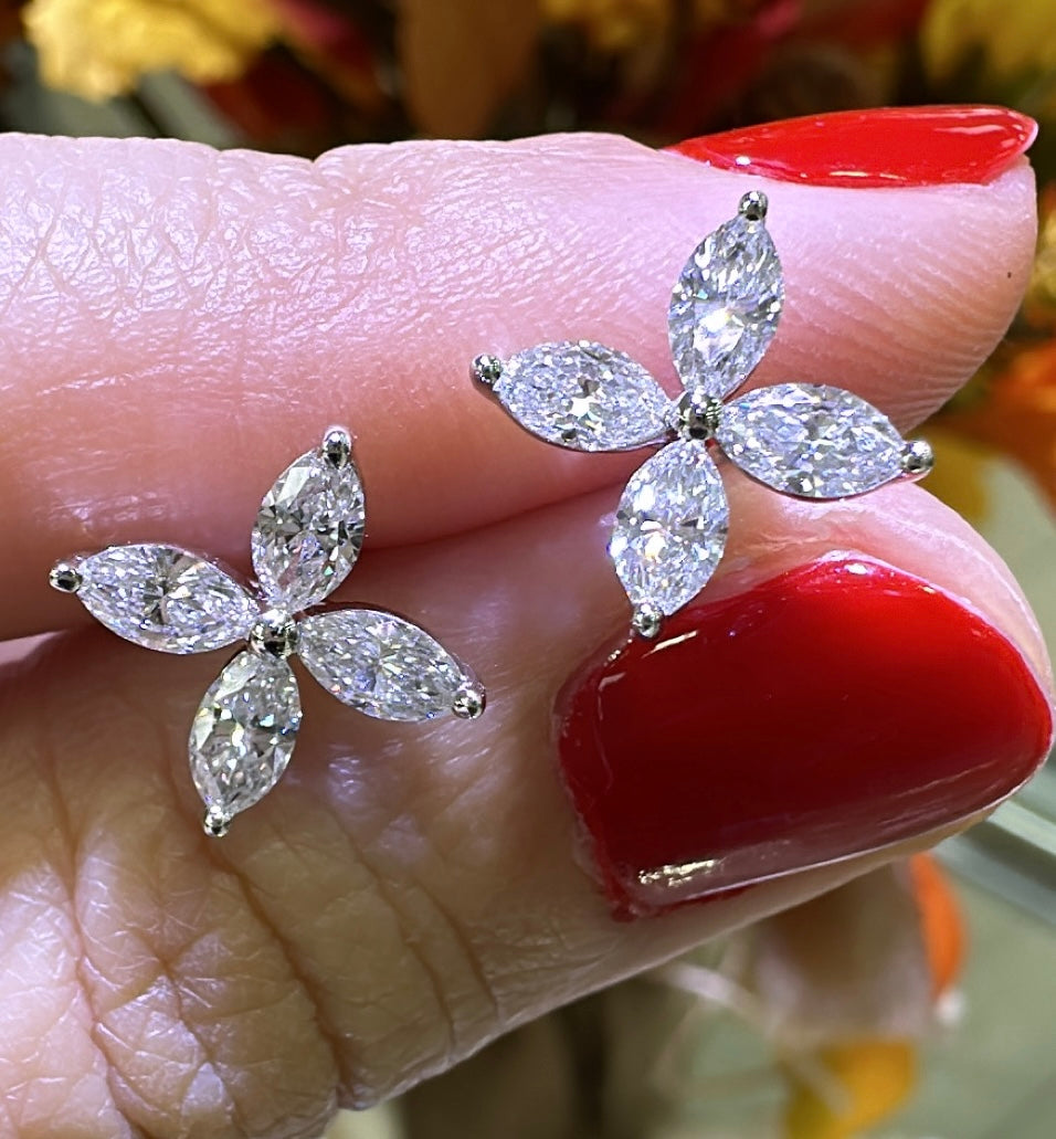 This design is so elegant and flirty she will never take these off her ears. It can become her favorite ones in the jewelry box. Solid marquise cut 1.13ctw of diamond flower motif that makes them so unique and beautiful.