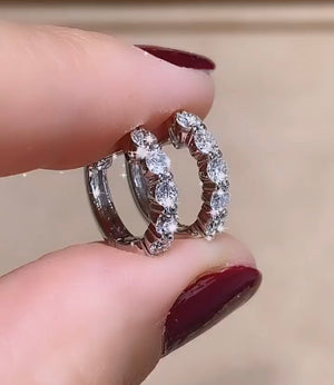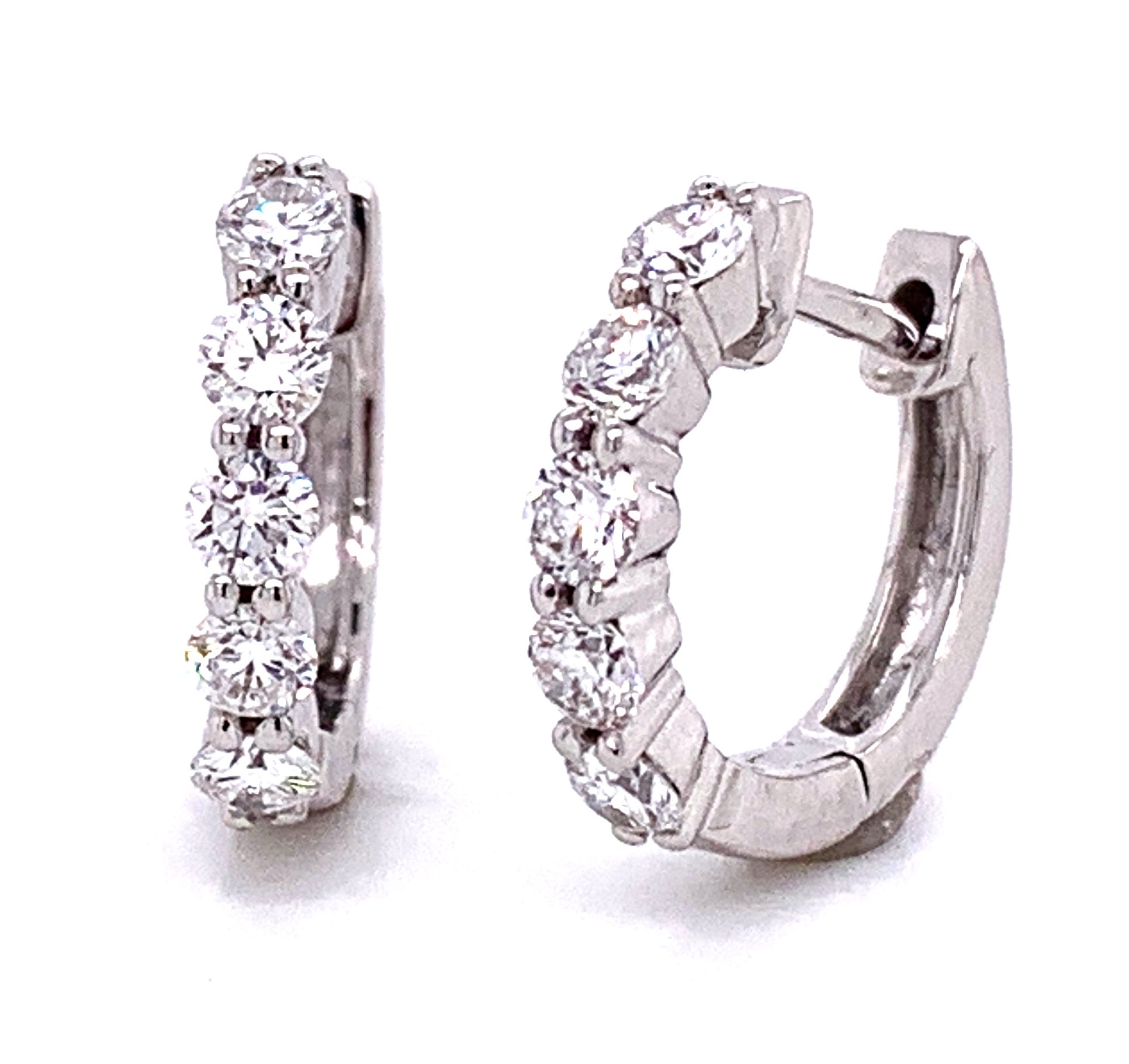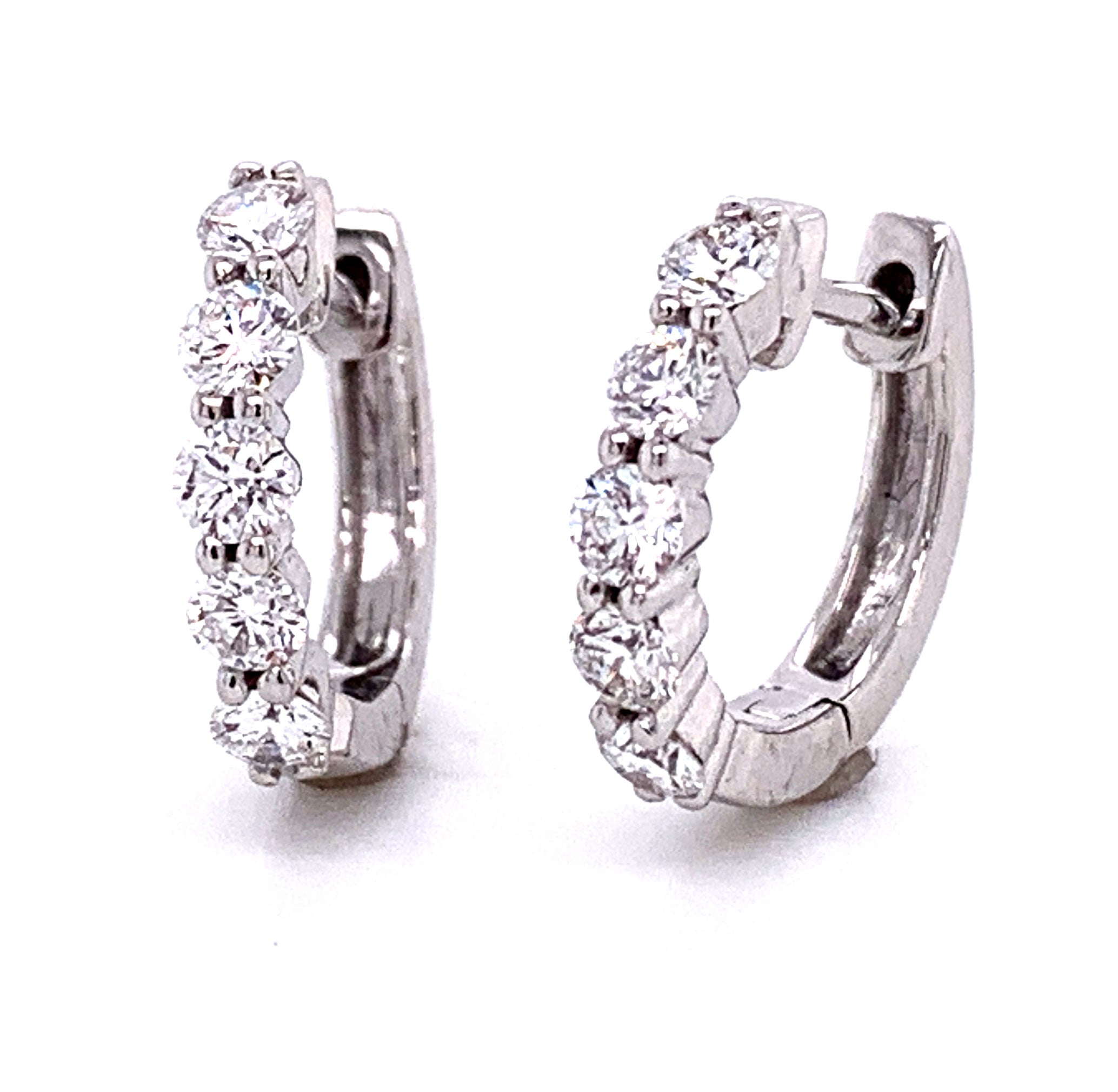 These round diamond hoop earrings have been given a stylish touch with an elegant round cut diamonds. 18Kt white gold hoop earrings are set with 0.60carats in round diamonds. Every woman can always use a pair of classic diamond hoop earrings to add to their wardrobe.