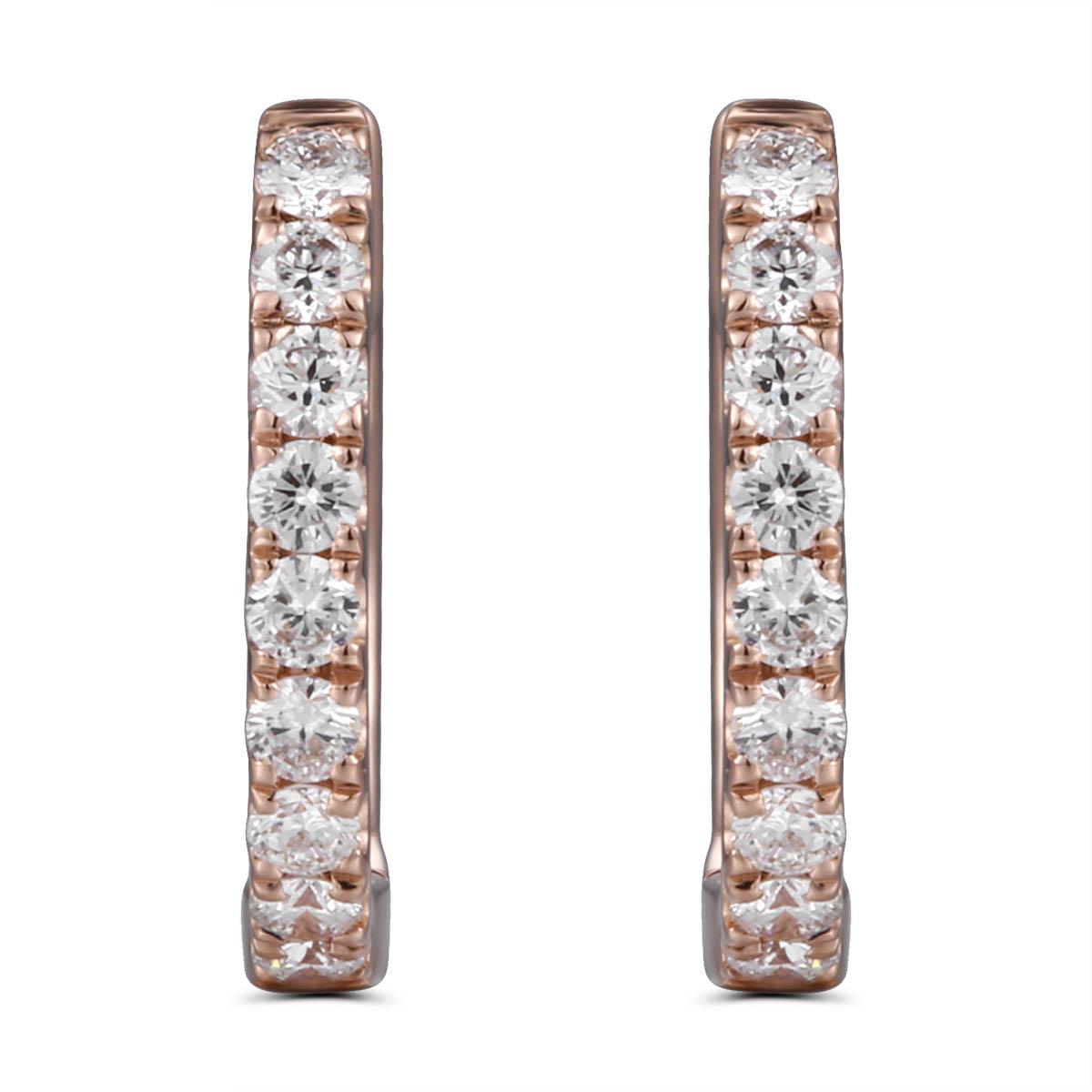 These round diamond hoop earrings have been given a stylish touch with elegant diamonds. 18K white gold hoop earrings are set with 0.30carats in round diamonds. Every woman can always use a pair of classic diamond hoop earrings to add to their wardrobe.