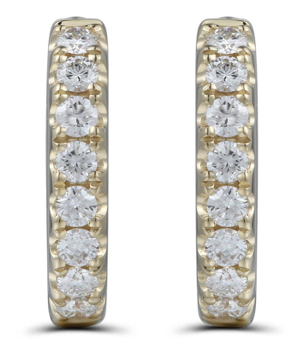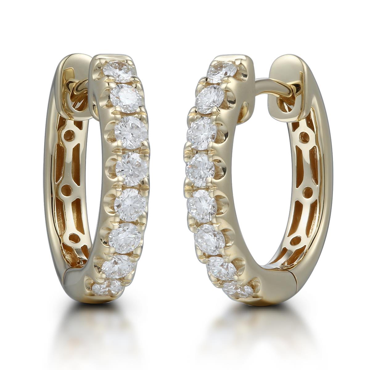 These round diamond hoop earrings have been given a stylish touch with elegant r diamonds. 18K white gold hoop earrings are set with 0.46carats in round diamonds. Every woman can always use a pair of classic diamond hoop earrings to add to their wardrobe.