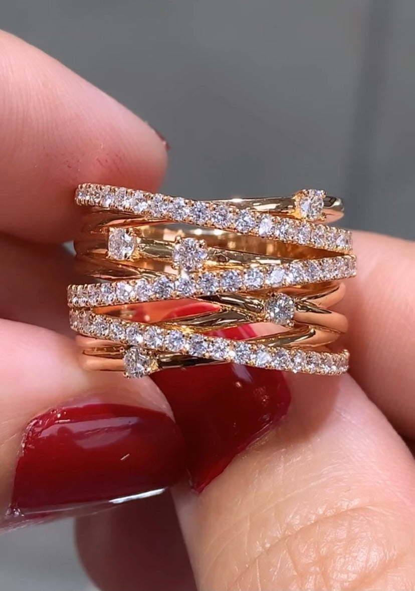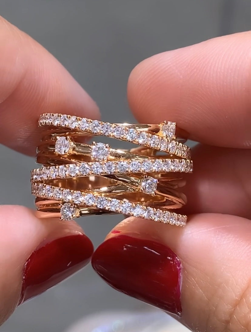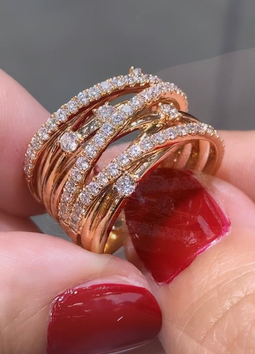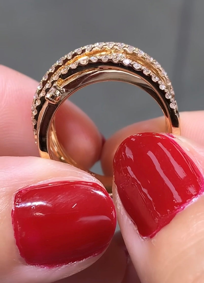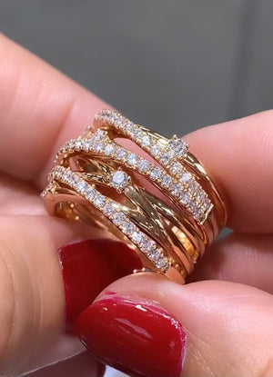 Experience elegance and luxury with our ladies diamond overlap style rose gold fancy ring! This stunning piece features 1.08ct tw of sparkling diamonds in a unique and eye-catching design. Make a statement and elevate any outfit with this exquisite ring.