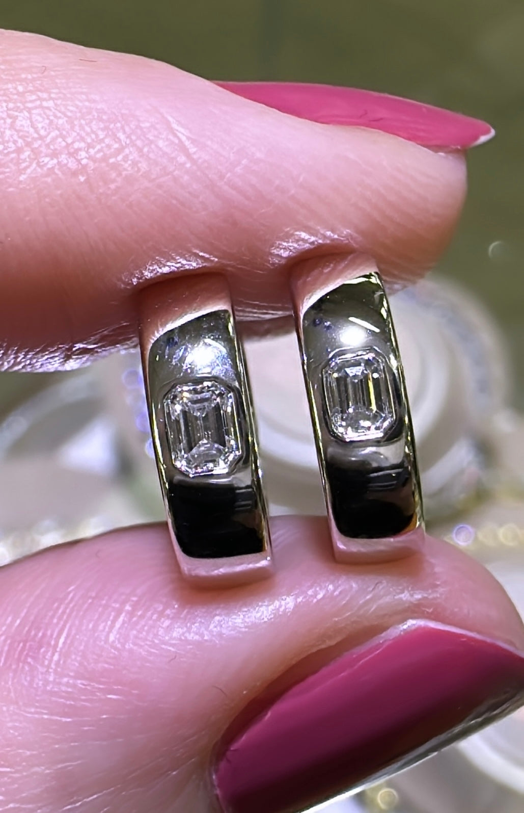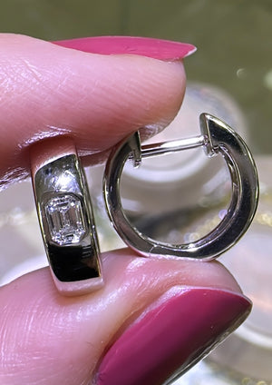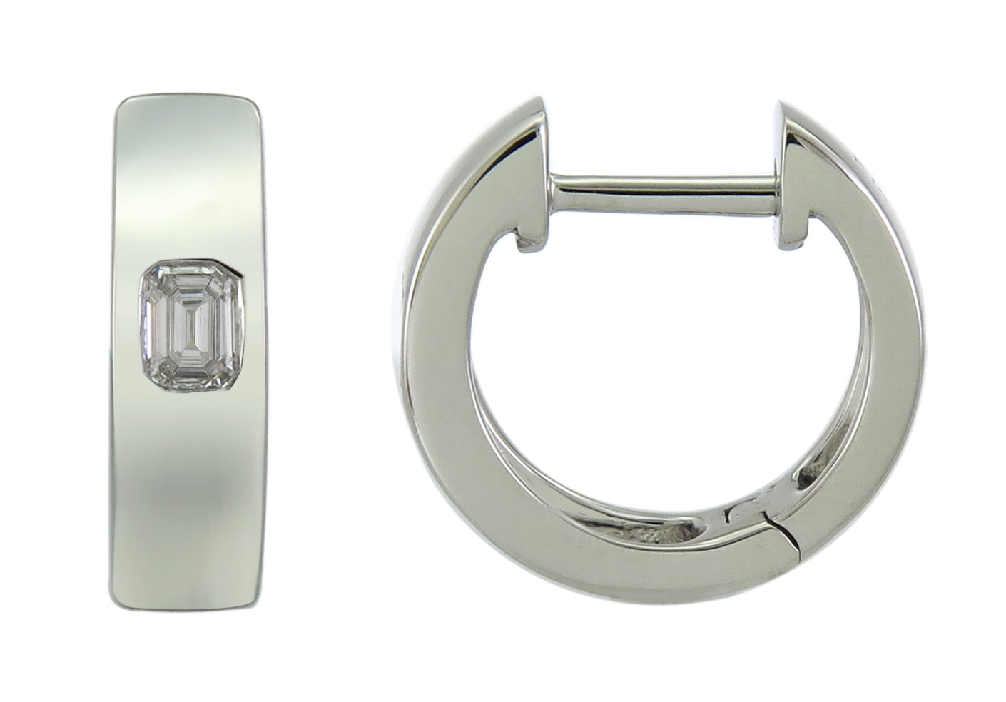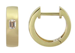 Ladies Diamond Single Emerald Cut Huggie Earrings 0.22ct tw