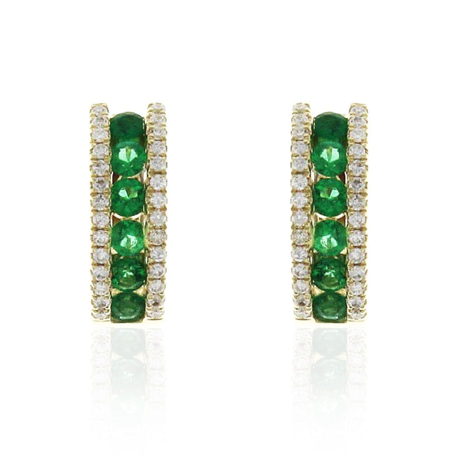 Ladies Emerald & Diamond Huggie Earrings 0.56ct tw