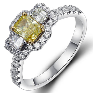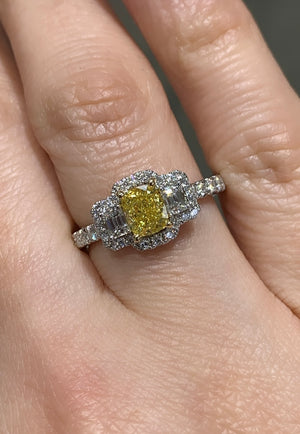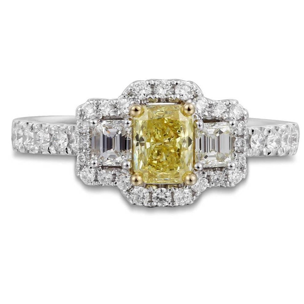 Ladies Fancy Yellow Center Side Emerald-cut Diamond Ring