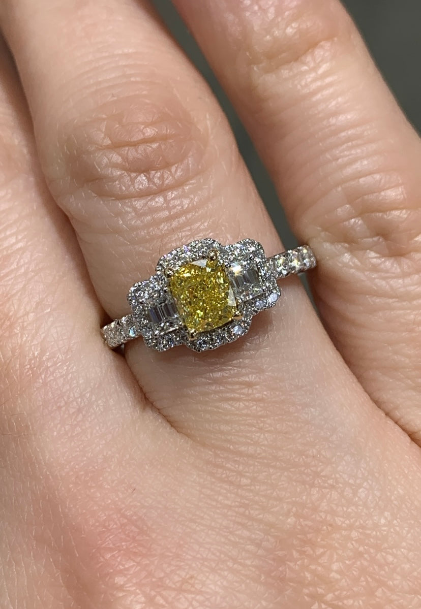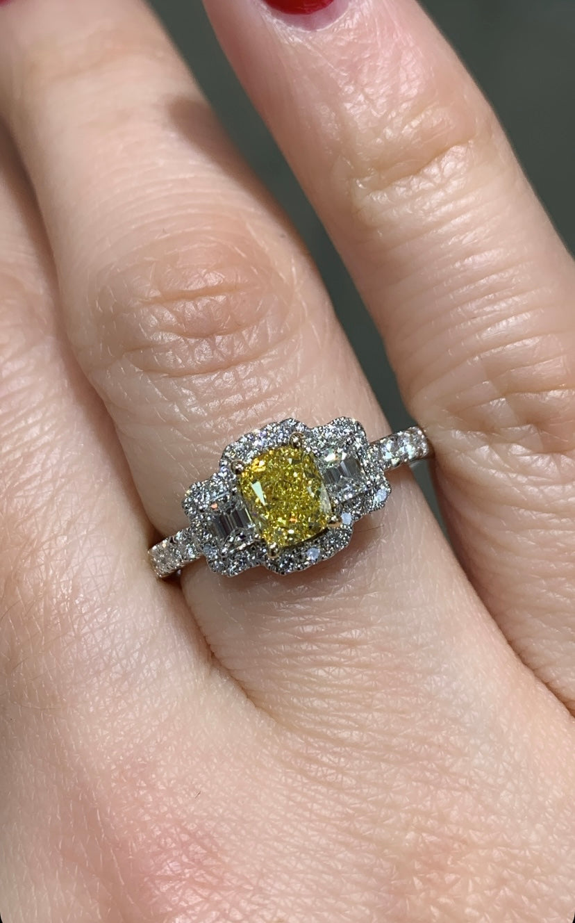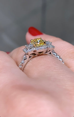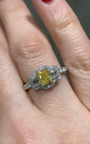 Center Diamond: Cushion Cut 0.91ct Fancy Yellow Canary