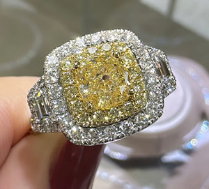Center Diamond: Cushion Cut 1.18ct Fancy Yellow Canary