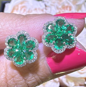 Ladies Green 1.88ct tw Emerald and Diamond Earrings