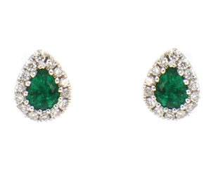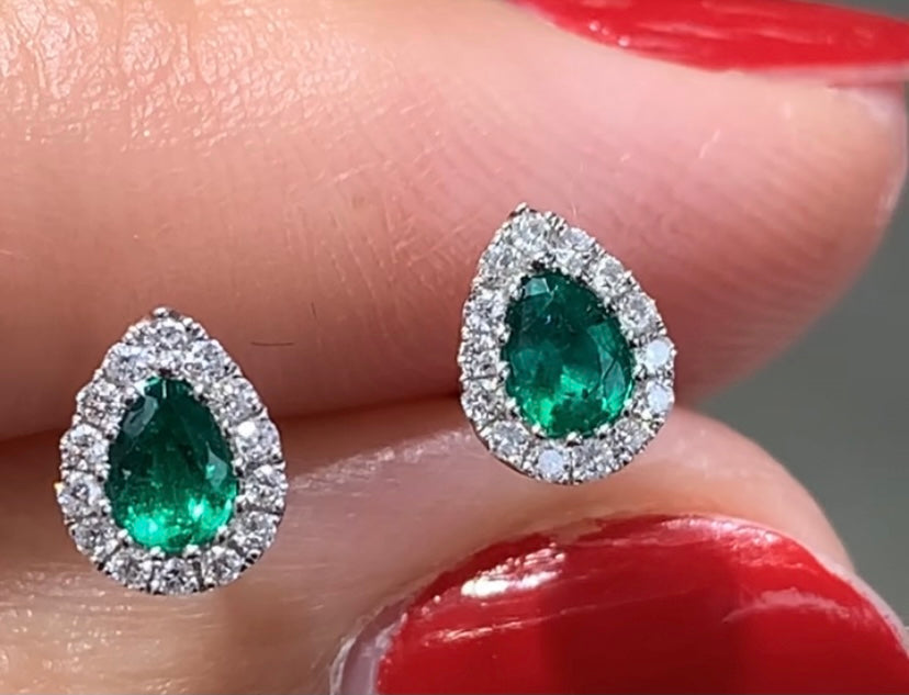 Vivid green pear shape emerald and diamond stud earrings are delicate and elegant. The color is so lovely and bubbly.