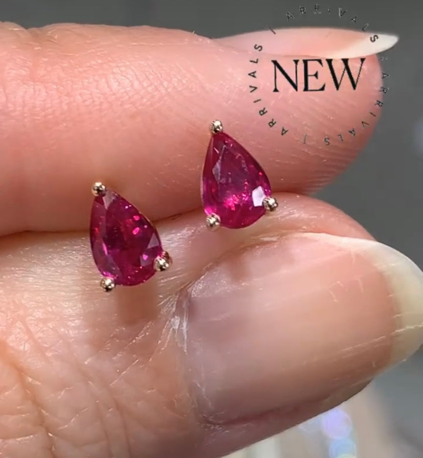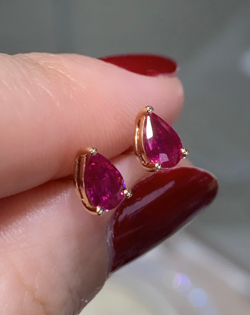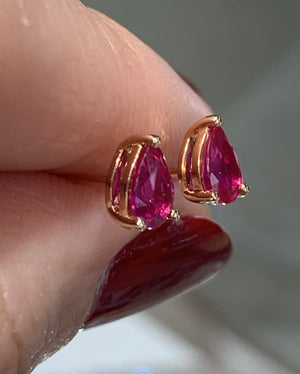 Vivid red pear shape ruby stud earrings are delicate and elegant. The color is so lovely and bubbly.