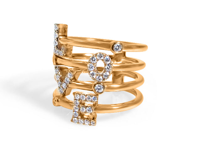 Ladies Rose Gold  "LOVE"  Diamond Ring - HANIKEN JEWELERS NEW-YORK