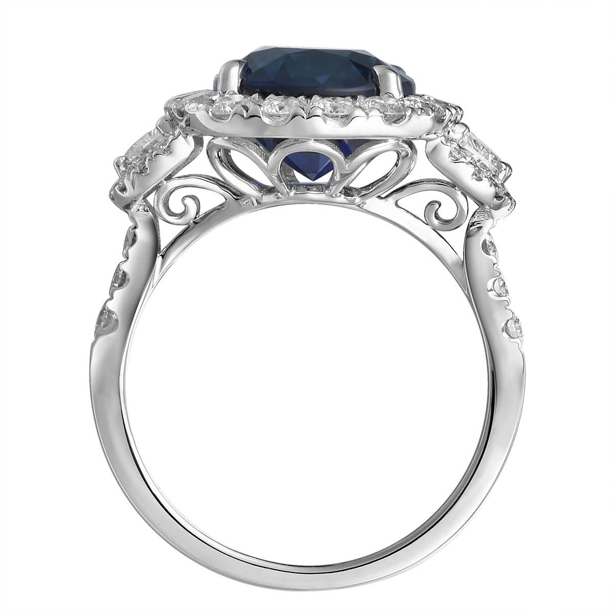 The center stone is oval in shape and has gorgeous facets. For extra sparkle, it has been framed by 1.34 round diamonds forming a beautiful halo around.