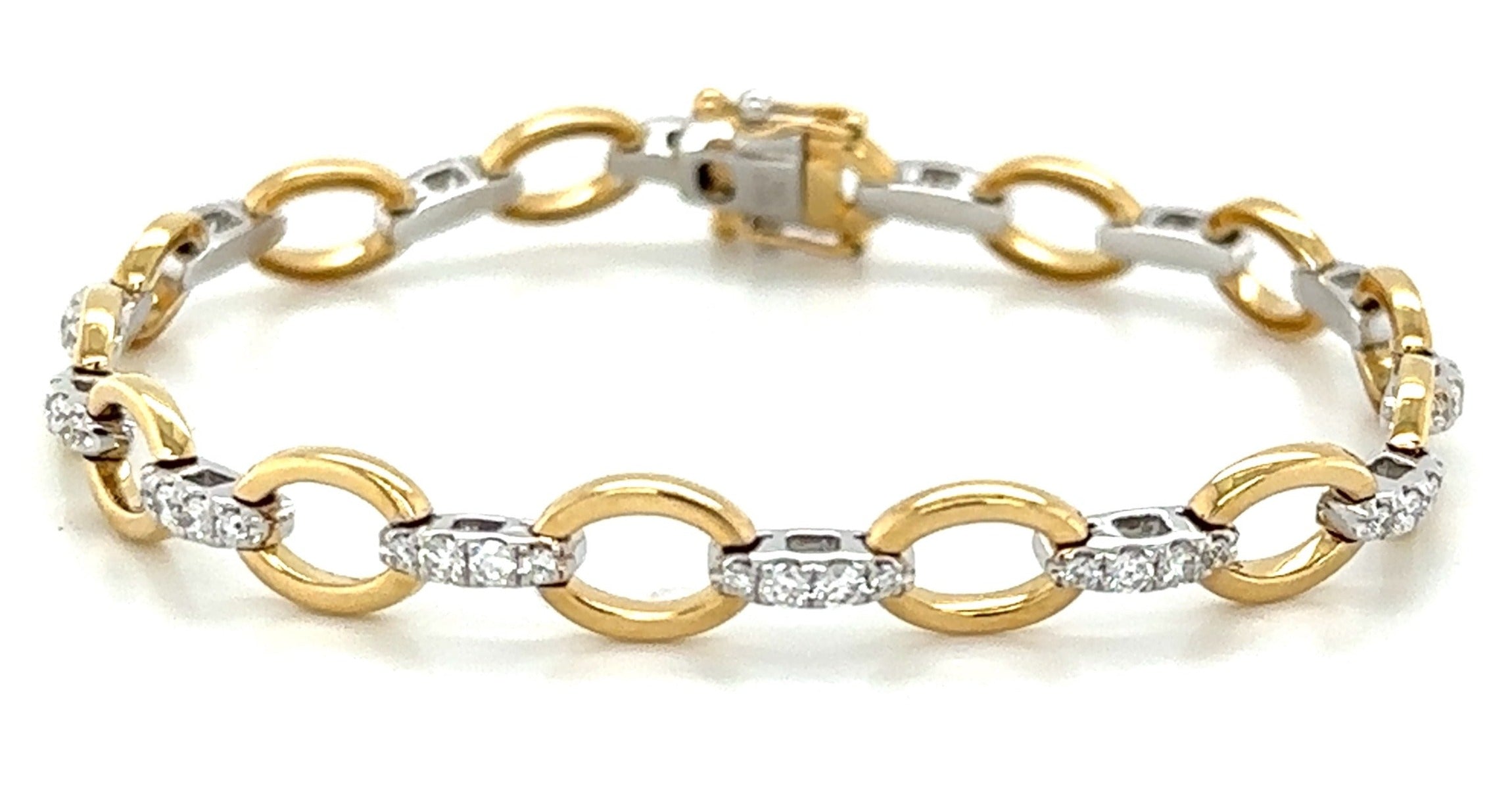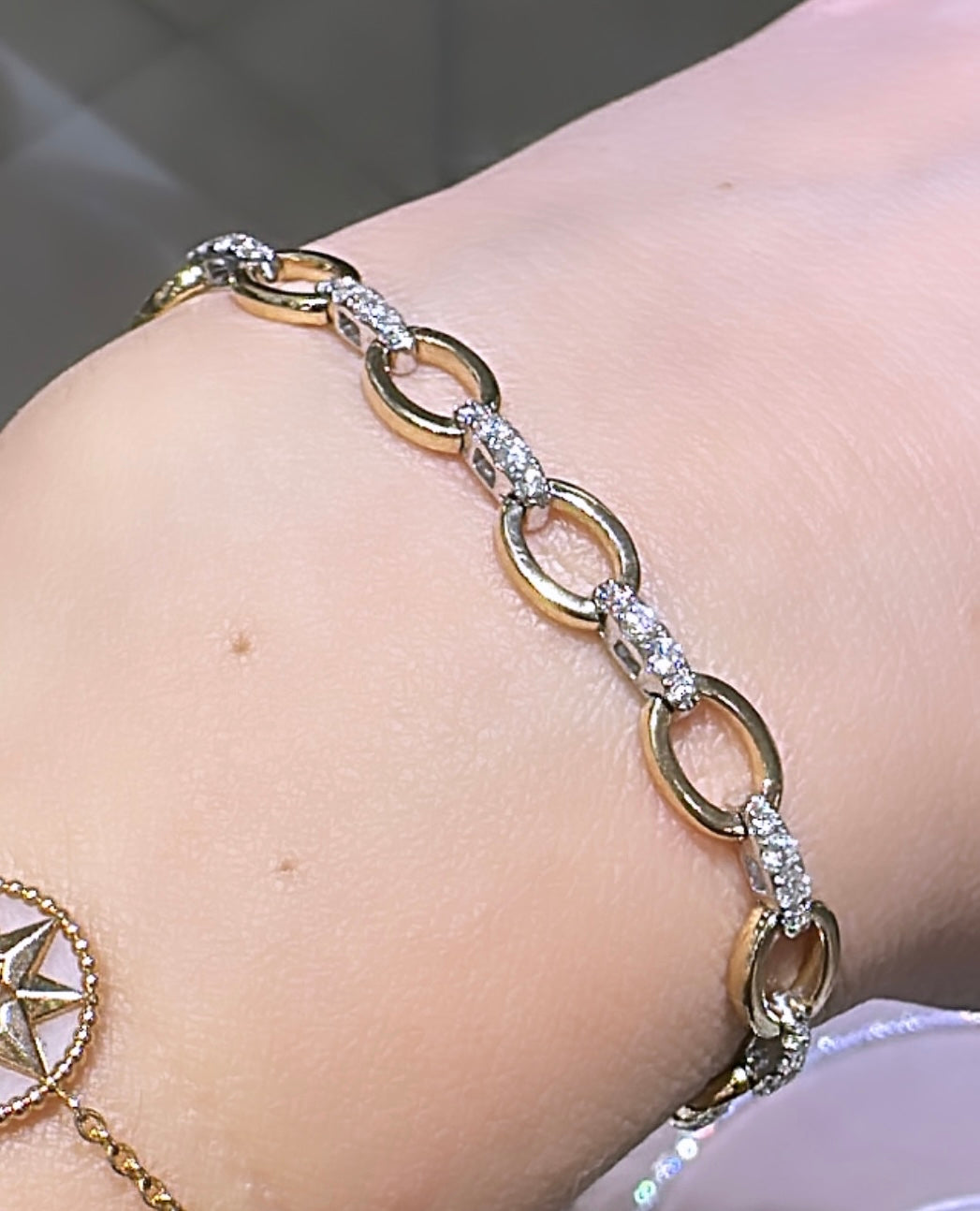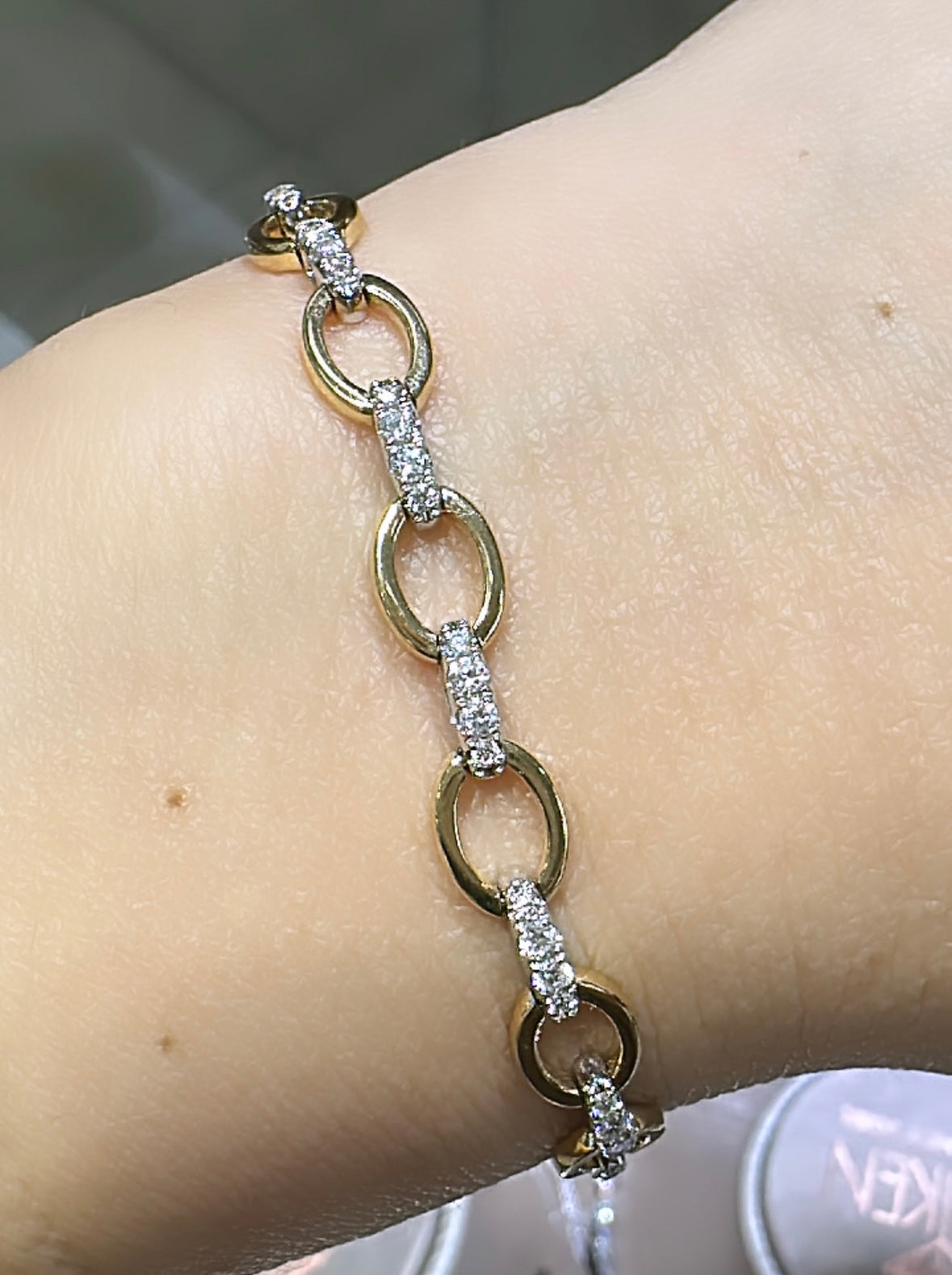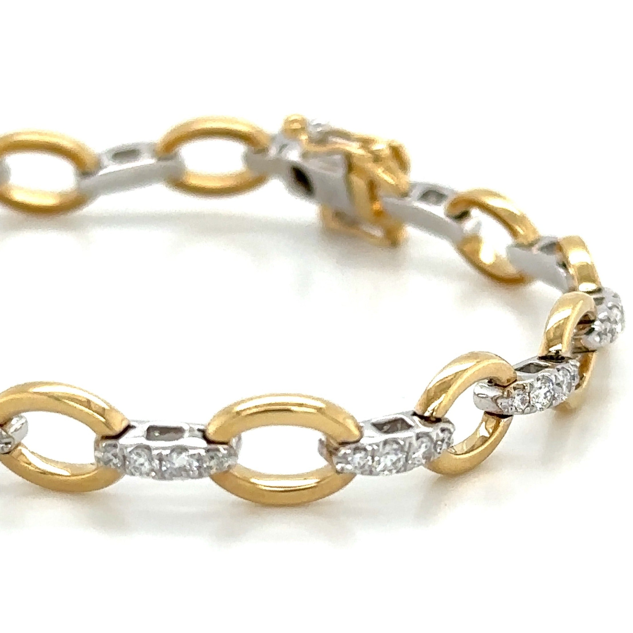 This Ladies Two Tone Gold Diamond Pave Link Bracelet is designed with elegance and sophistication for any special occasion. Crafted with stunning two-tone gold, it glitters with diamond-pave details for a timeless and classic look. It's sure to add the finishing touch to your outfit!