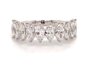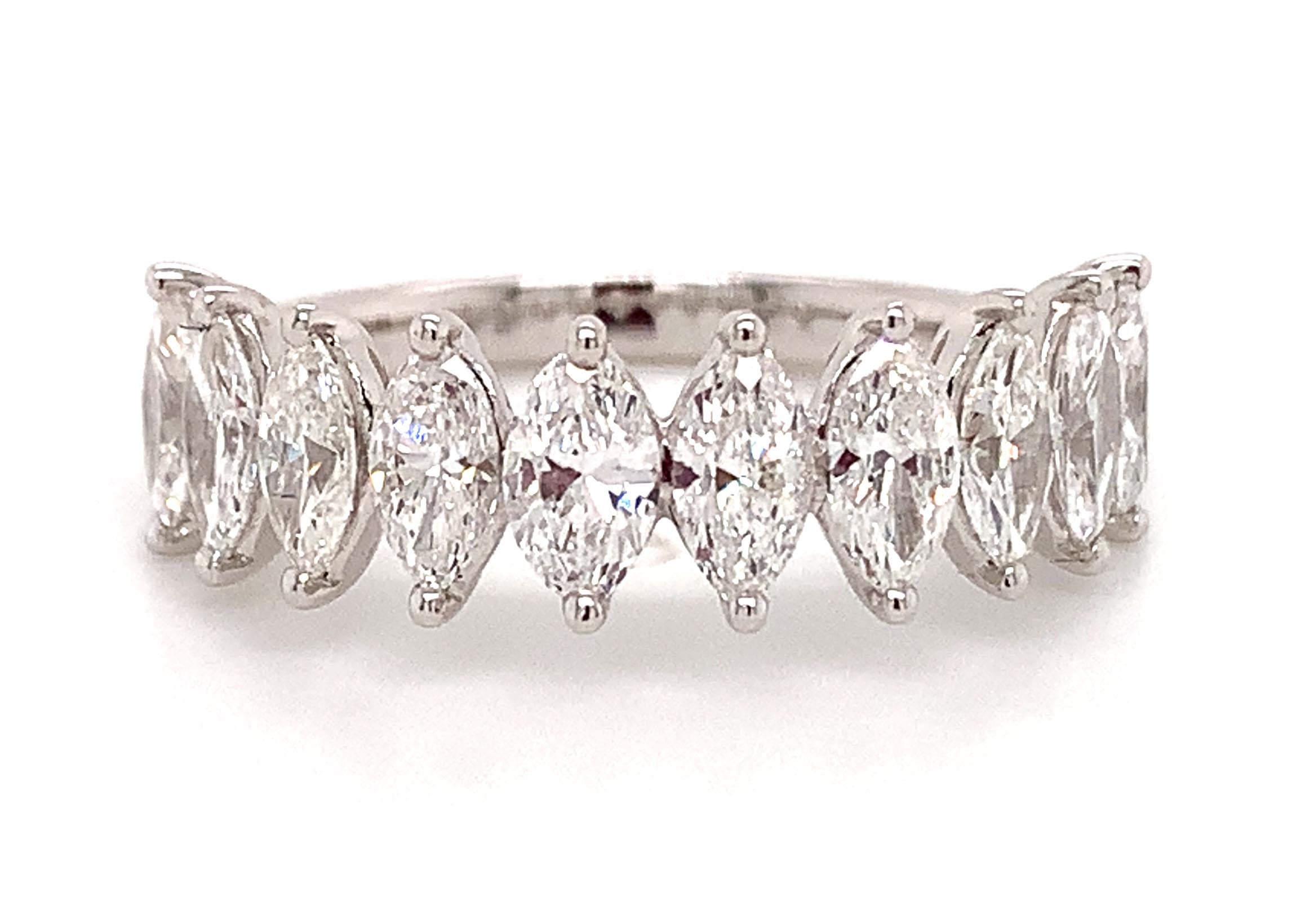 Ladies diamond eternity ring made with 18K white gold and is prong set with 10 marquise diamonds. Total carat weight 2.00ct t.w.