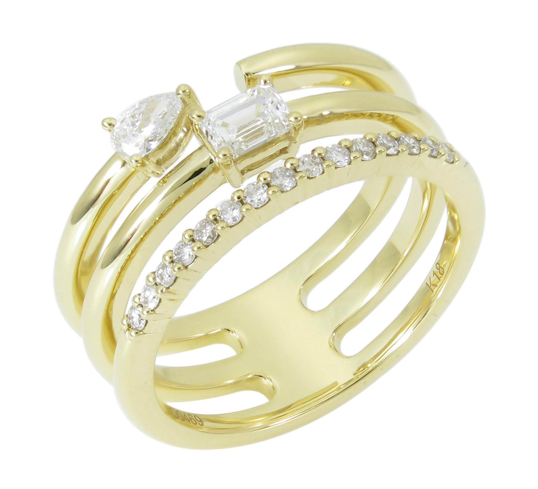 Diamond Shape: Round Brilliant Cuts with 1 Emerald-cut 0.23ct tw , 1 Pear-cut 0.09ct tw