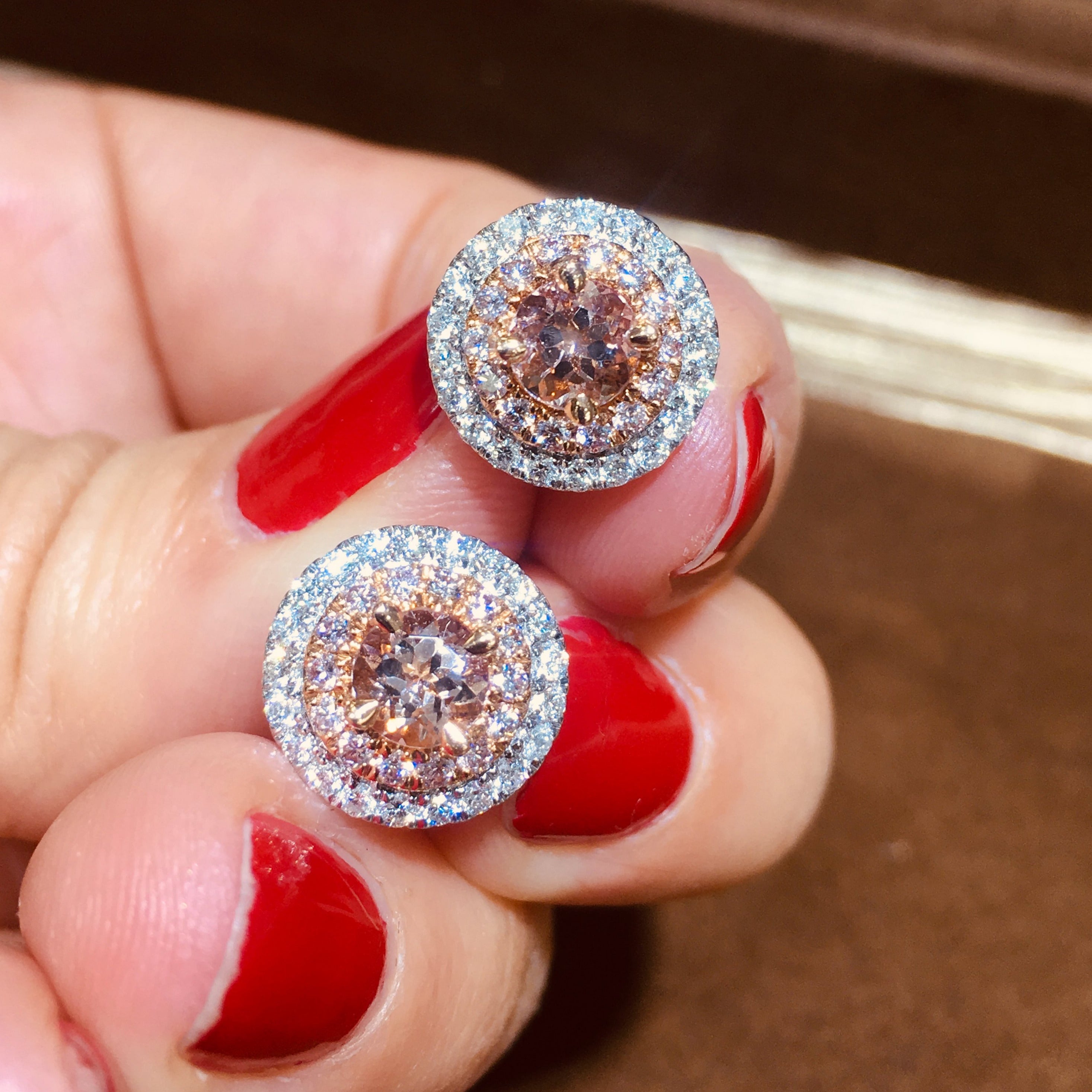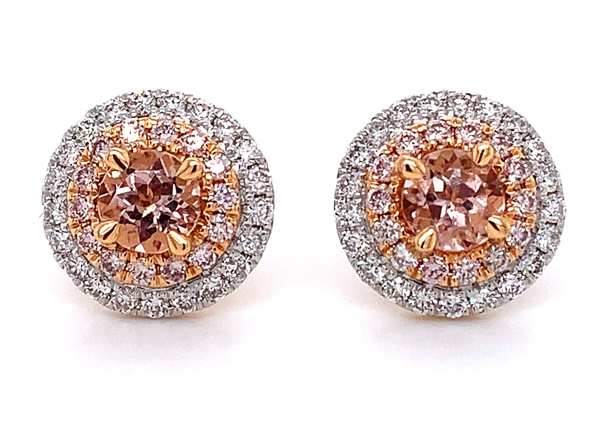 Morganite & Rare Pink and White Diamond Earrings