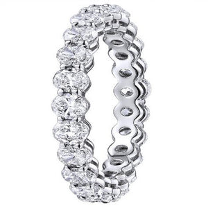 This Eternity band is made 2.77 total carats. 23 stunning oval cut diamonds are prong set in luxurious platinum for a fiery show of brilliance. Each diamond is perfectly matched