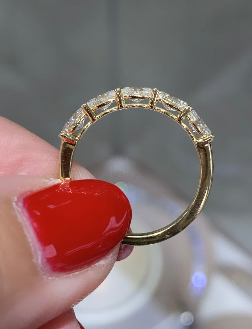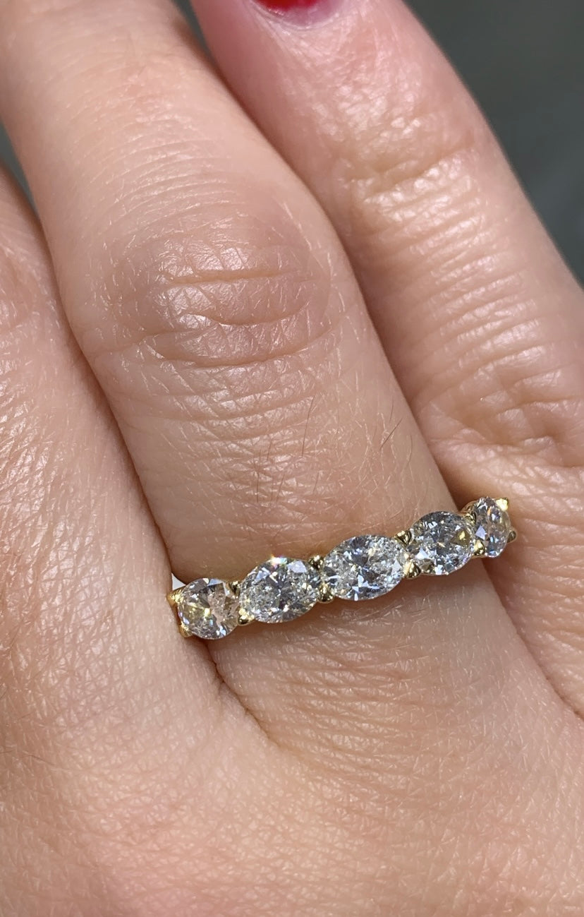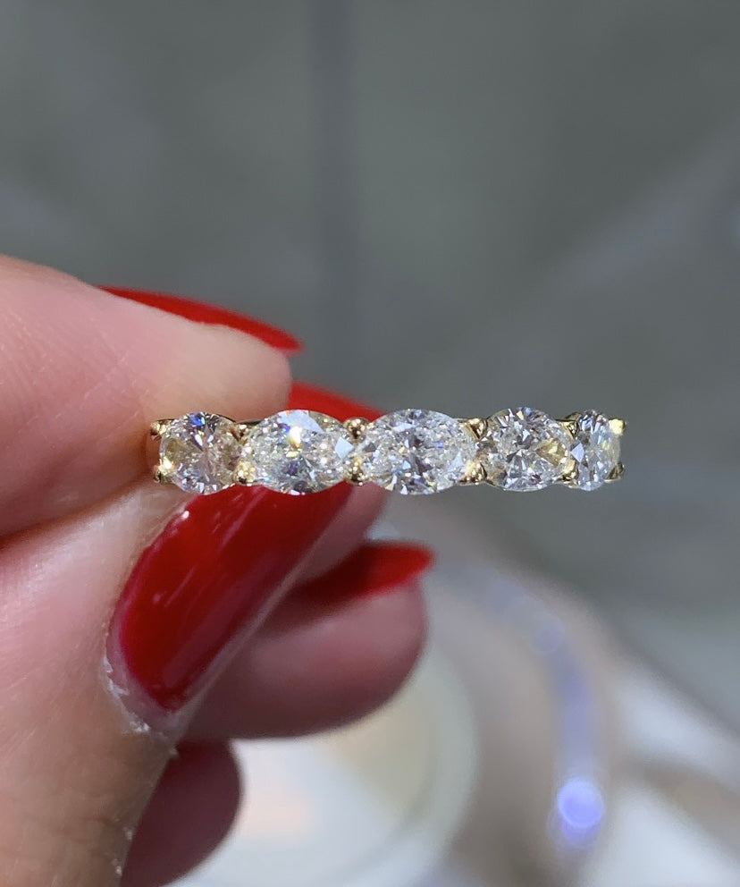 Oval cut diamond half eternity band is absolutely amazingly crafted 18K Yellow Gold and made with 5 oval cut diamonds set horizontally.