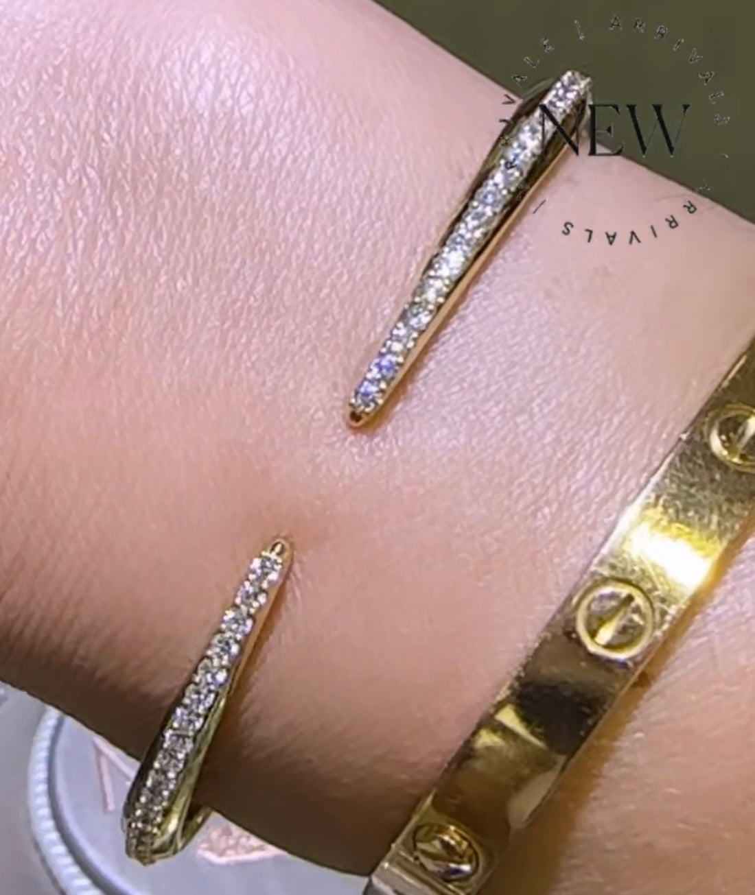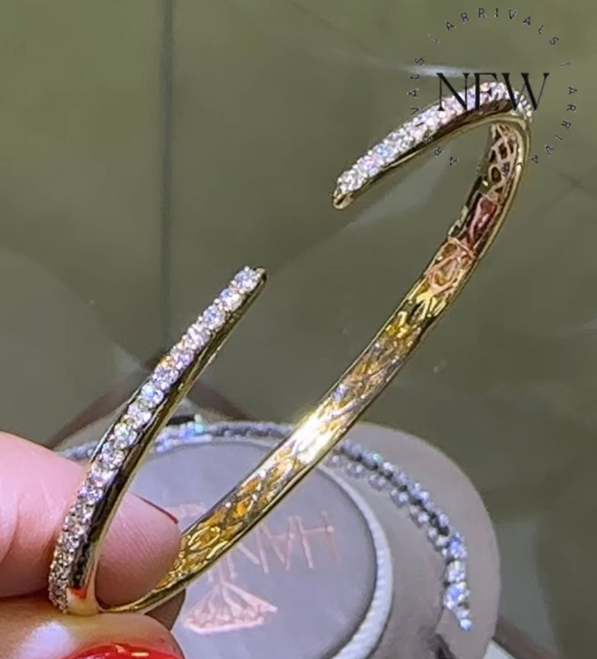 This dazzling Pave- set hinged diamond open wrap claw cuff bangle bracelet will add a sparkle to any look. Showcasing a range of bright and shimmering diamonds, it will draw attention and create a stunning display. Make your style unforgettable with this sophisticated bracelet!