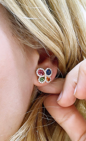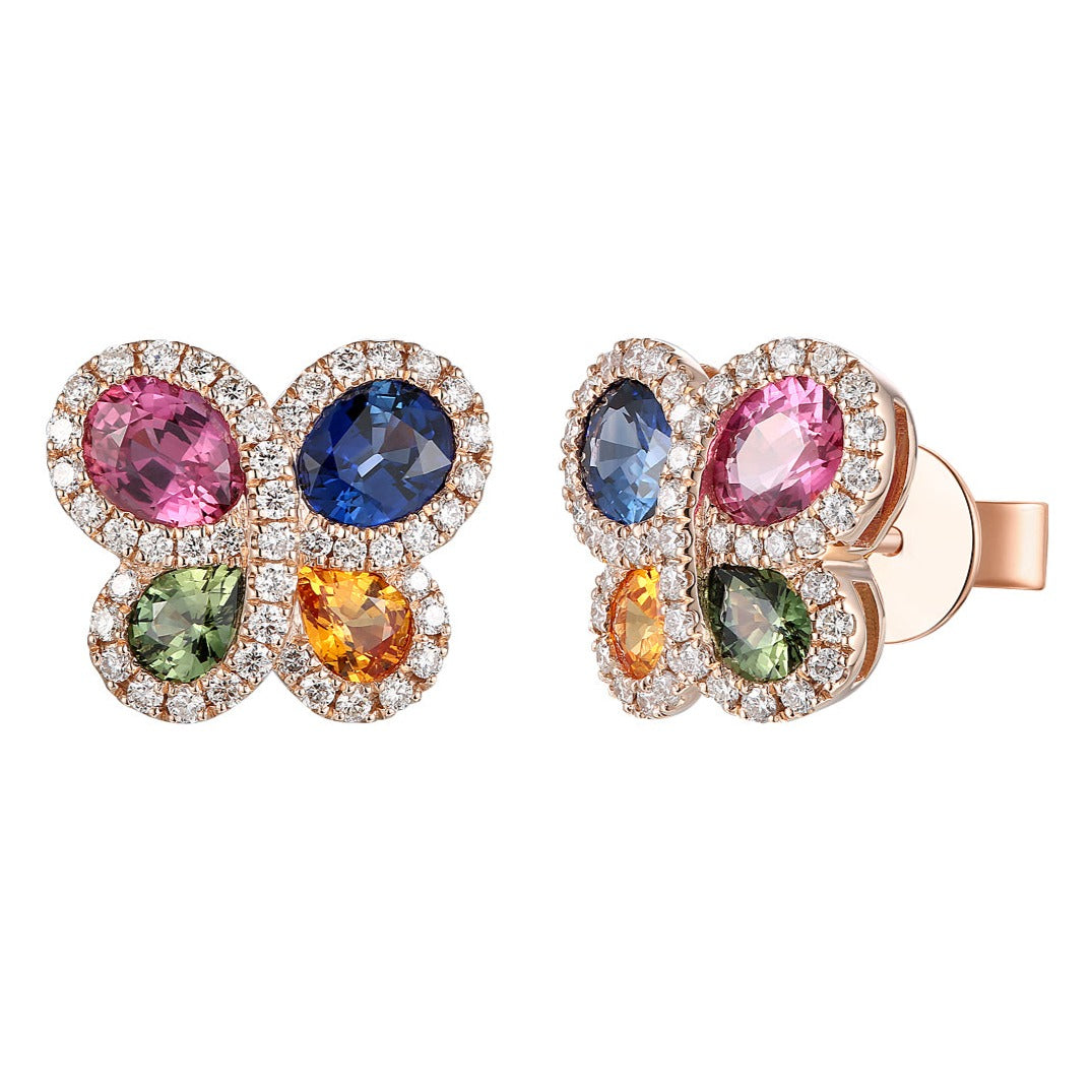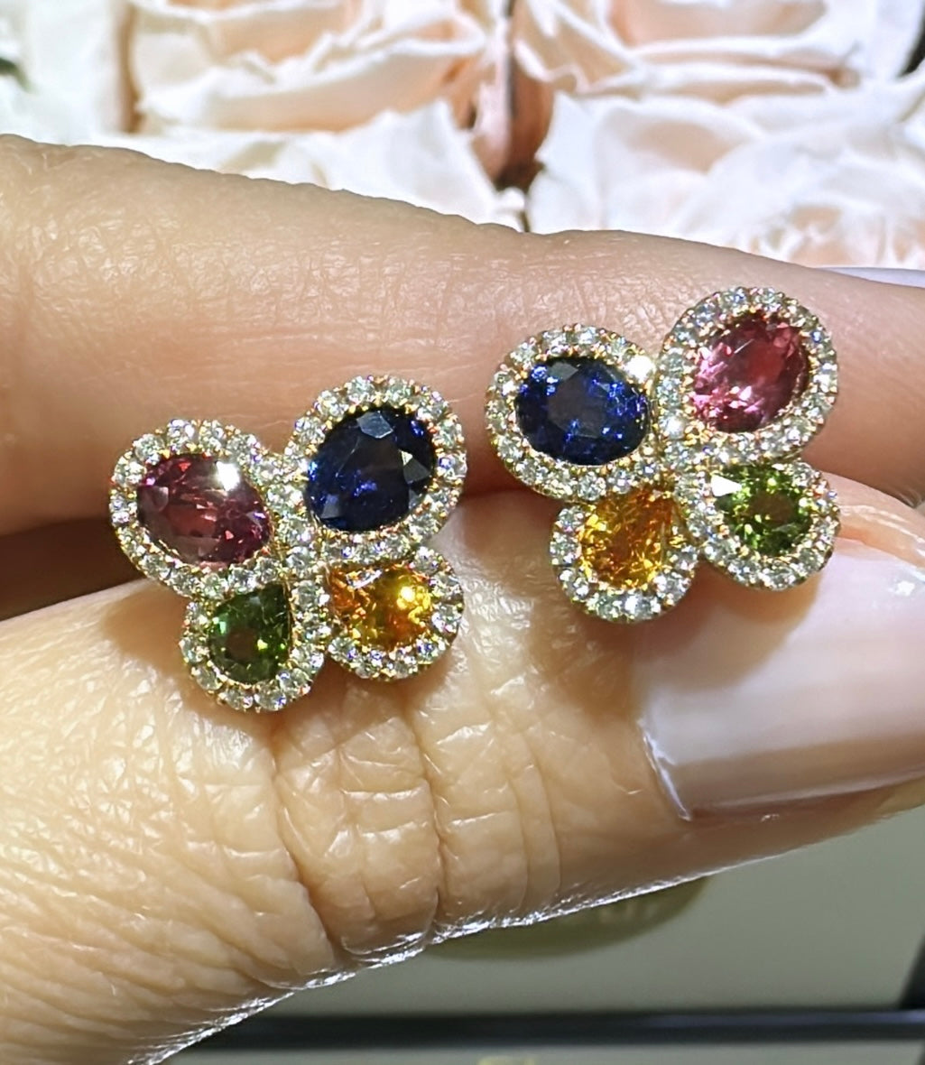 Featuring a stunning combination of rainbow sapphire and diamonds set in gleaming gold, these stunning earrings will take your breath away! Crafted to perfection, they are perfect for any special occasion – and make a thoughtful and unique gift for a loved one.