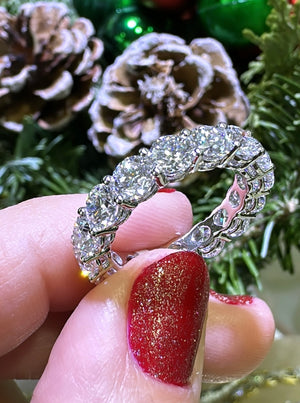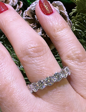 Make a dazzling statement with this exquisite round brilliant-cut lab diamond eternity ring. Delicately crafted and exquisitely designed, this 5.40carat eternity ring will bring a twinkle to your eye and timeless beauty to your look. Shine bright like a diamond and enjoy the luxury of an eternity ring.