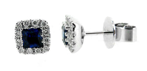 This 0.71ct Princess cut center sapphire earrings is complimented by round diamonds to set off its beauty even more. white gold and the rich color complements the deep blue hue perfectly.