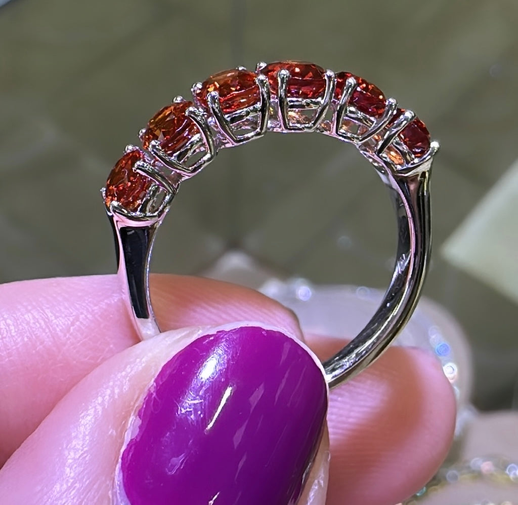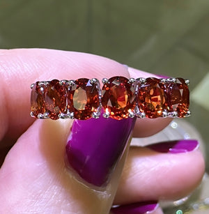 Make a lasting impression with this beautiful Six orange sapphire oval cut ring. Boasting 2.65carats of alluring brilliance, this exquisite ring sparkles with an aura of brilliance like no other. Embrace luxury jewelry with this stunning piece.