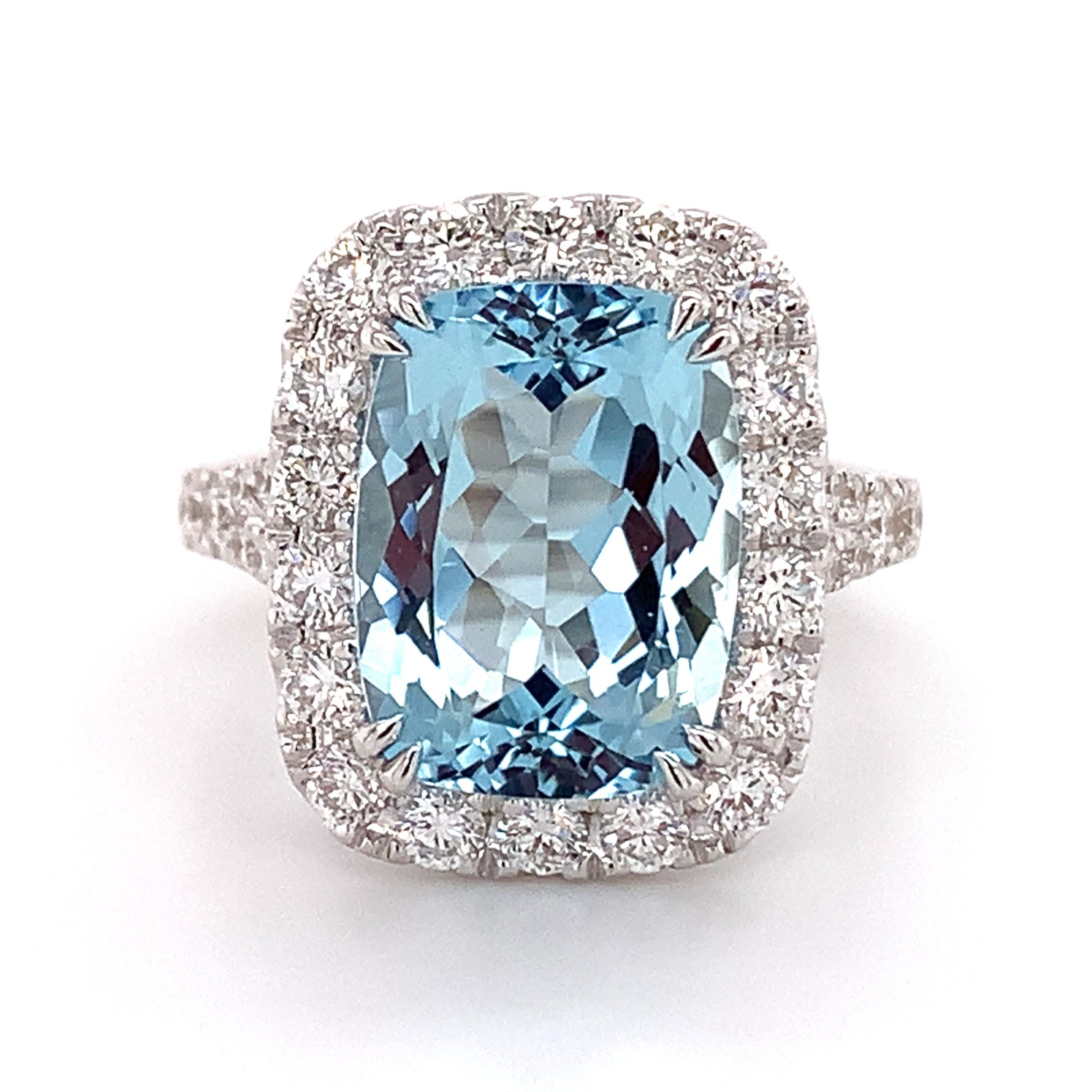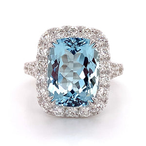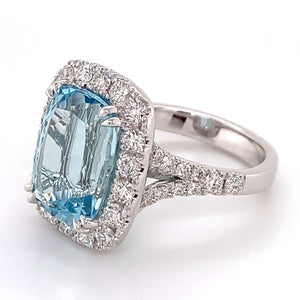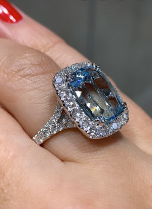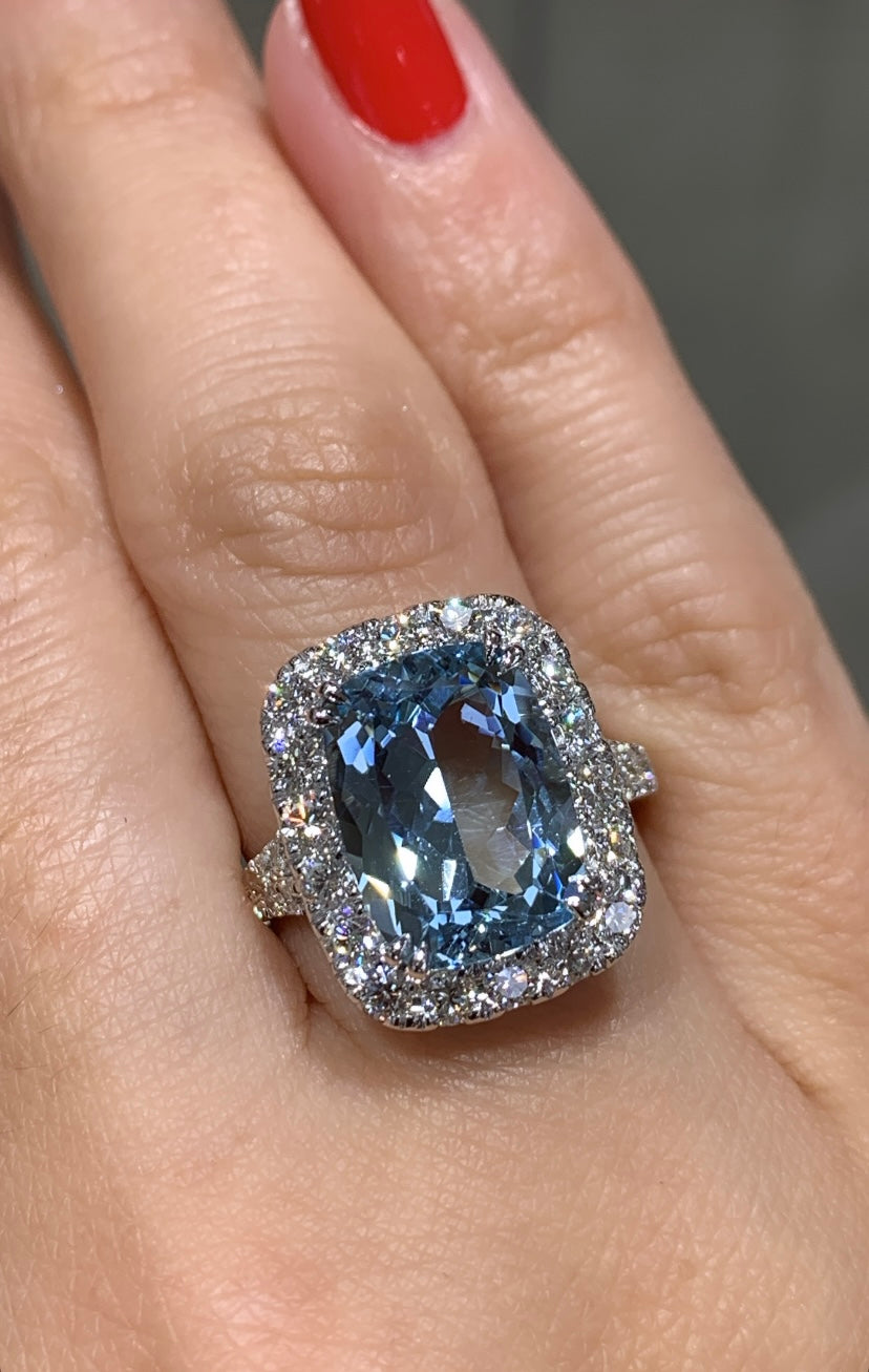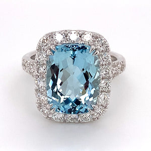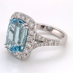 Cushion cut Aquamarine& Diamond Ring