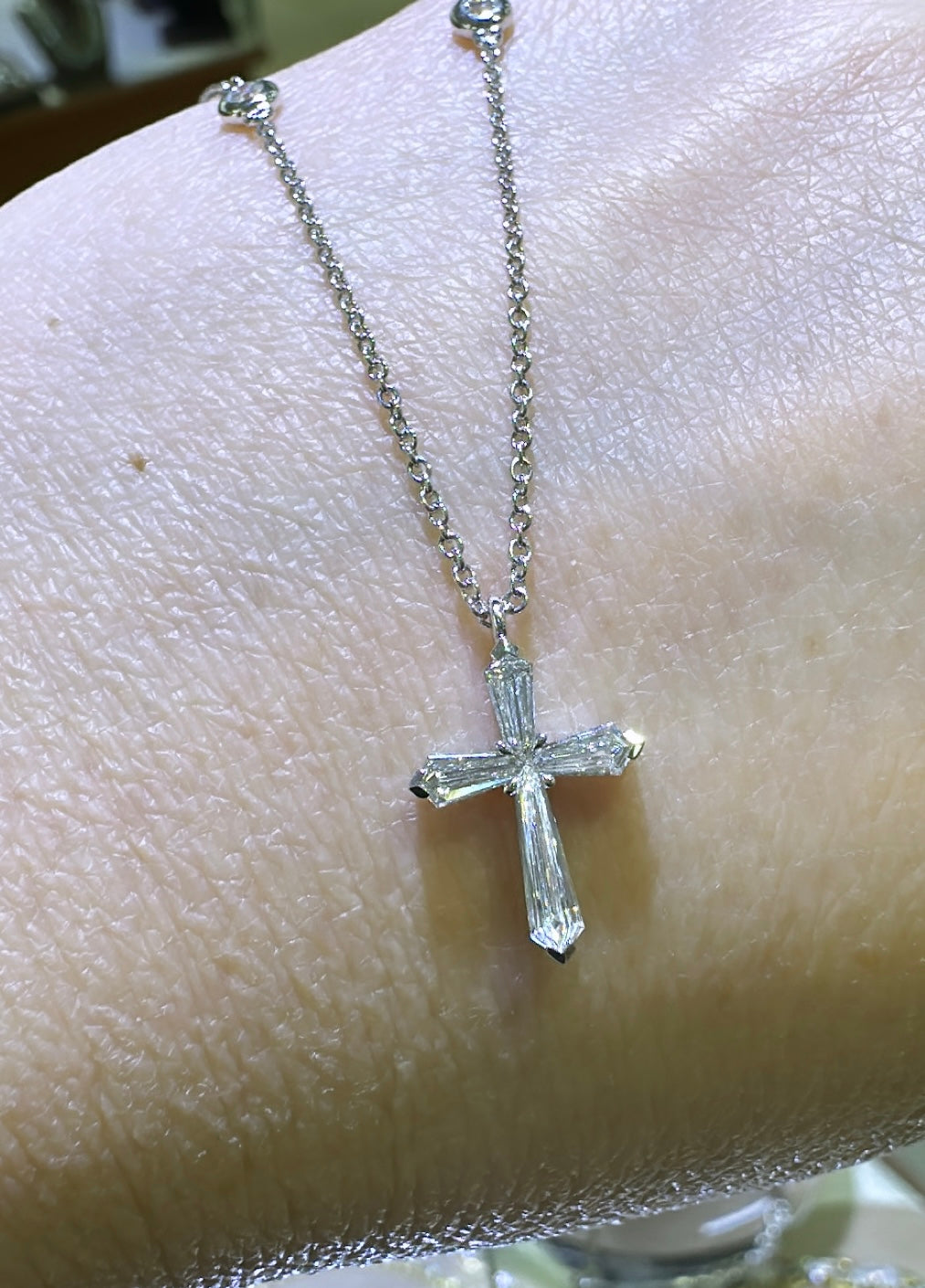 Indulge in luxury with our Trapezoid Diamond Cross Pendant Necklace, featuring a sparkling 0.41ct tw diamond cross. Its unique trapezoid shape adds a modern touch to this timeless piece. Perfect for adding a touch of elegance and sophistication to any outfit.
