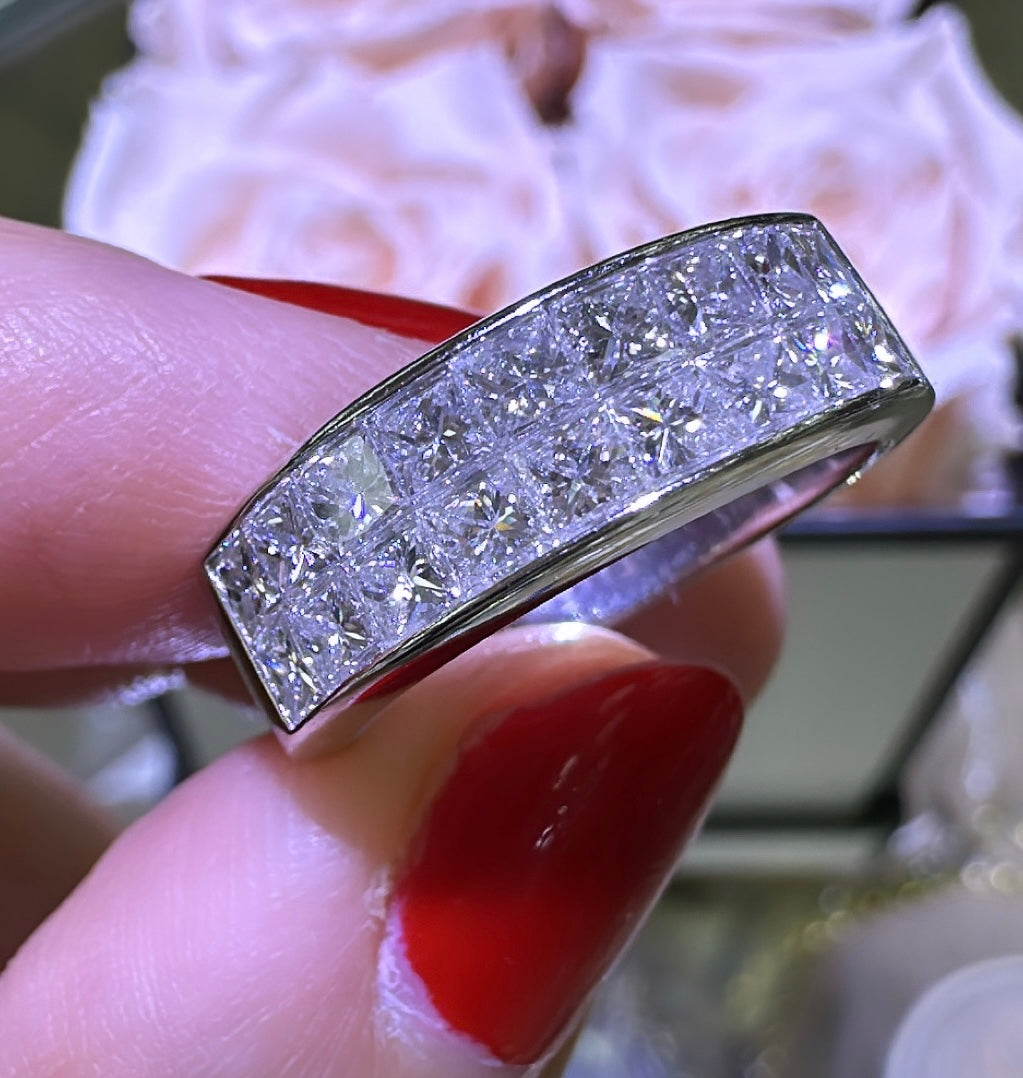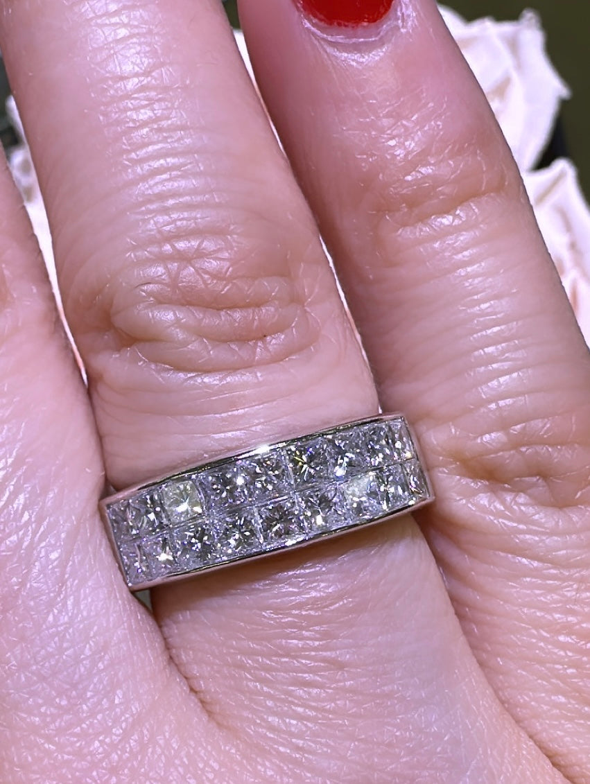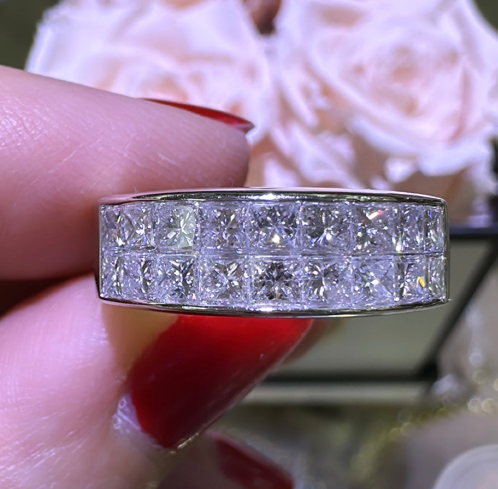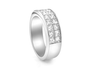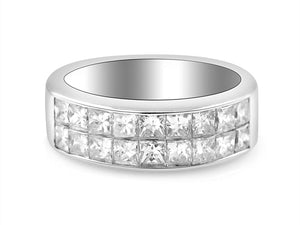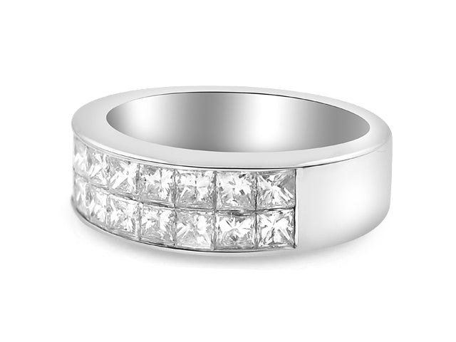 Upgrade your jewelry collection with our two row princess cut diamond band! Featuring a stunning 1.20 carat total weight of sparkling princess cut diamonds, this band will add a touch of elegance and sophistication to any outfit. Treat yourself or a loved one to this luxurious and timeless piece.
