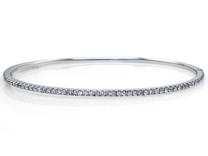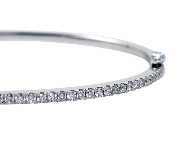 Bangles are great for stacking, but with this bold and beautiful diamond bangle bracelet, you only need one! This 18kt white gold bracelet is simply covered in pave round diamonds...